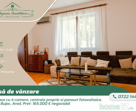 Elegance Imobiliare vă oferă spre achiziție o casă cu 4 camere situată în zona Bujac, Arad. Construită integral din cărămidă și avelopată la exterior cu ampora de 10 cm, această locuință dispune de o structură P+M și este parțial mobilată și utilată. Suprafața totală construită este de 210 mp, din care suprafața utilă este de 144 mp, iar terenul aferent are o suprafață de 281 mp. Casa a fost renovată în anul 2022, asigurându-vă astfel un confort modern și funcțional.