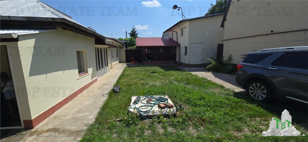 Proprietatea se afla pe un teren de 420 mp, cu deschidere de 18 metri, si este compusa din doua corpuri de casa: