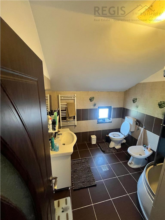 ID INTERN - 5620 REGIS Imobiliare va propune spre vanzare o casa cu 4 camere, pe 2 nivele in Harman. Aceasta se afla intr-o zona linistita. Proprietatea a fost construita in anul 2017 si se afla pe un teren generos de 920 mp, fiind intabulata. Compartimentarea acesteia este in felul urmator: Parter: - Baie - Bucatarie - Camara - Living - Terasa acoperita Etaj: - baie - dormitor 1 - dormitor 2 - dormitor 3 - balcon 1 - balcon 2 Alte facilitati: - Scarile interioare realizate din beton si placate cu gresie - Parchet, gresie, geamuri termopan, centrala termica, poarta electrica, video-interfon. - Semineu functional in living, care ii da un aspect deosebit acestuia - Panouri solare Comisionul agentiei este de 2% TVA. Pentru detalii suplimentare, contactati-ne telefonic! Consultant imobiliar Daniel