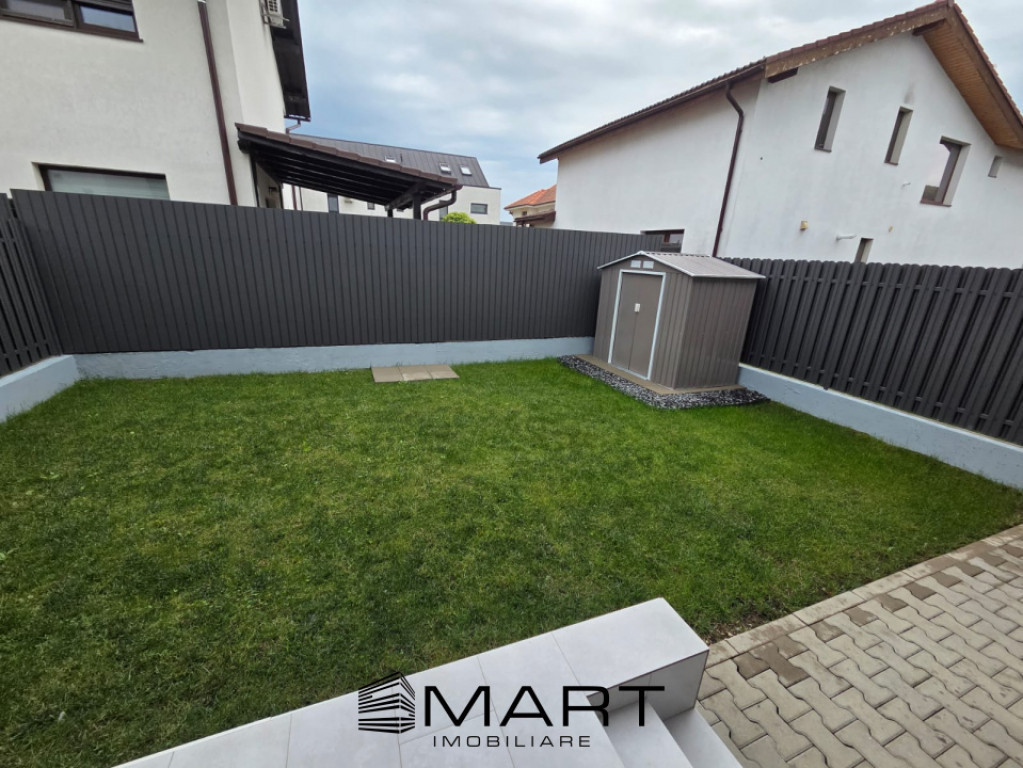 Curtea oferă o suprafață de 225 mp, din care aproximativ 100 mp reprezintă teren liber ce poate fi amenajat după preferințele viitorului proprietar. Accesul auto este asigurat prin 2 locuri de parcare și  garaje, iar frontul stradal de aproximativ 5 m și cu 1 fronturi, conferă proprietății vizibilitate și acces facil.