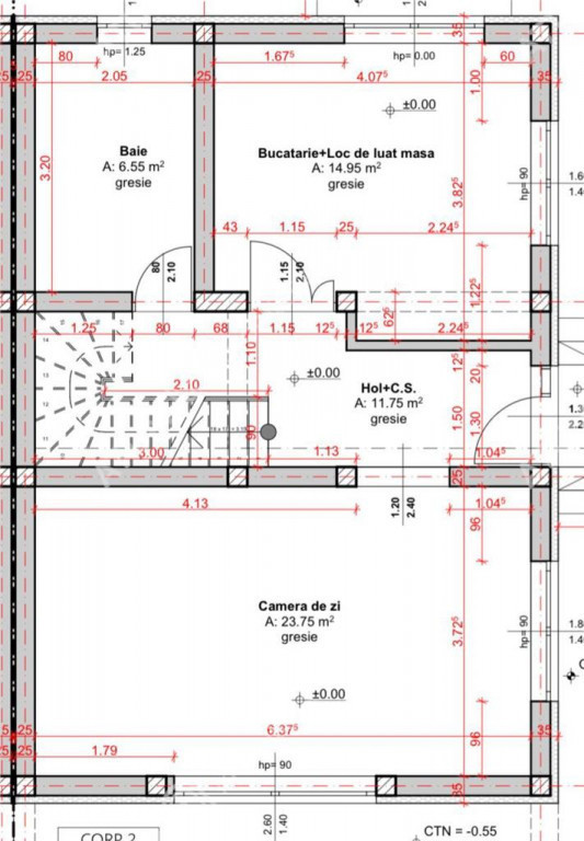 De vanzare casa intabulata compusa din 4 camere decomandate cu 2 bai, balcon la etaj si terasa generoasa la parter, dispusa cu regimul de inaltime Parter Etaj, pozitionata pe 250 mp de teren, localizata in Selimbar. Imobilul are suprafata construita de 154,54 mp cu amprenta de 78 mp astfel terenul liber masoara 172 mp si are deschiderea la strada de aproximativ 13 m. Terenul liber se desfasoara pe 3 laturi, atat zona din fata casei cat si din spatele acesteia sunt dedicate unor zone decorative care poate fi amenajate cu flori si arbusti decorativi iar partea laterala este amenajata atat cu pavaj fiind destinata pentru parcarea a 2 autoturisme cat si o zona care poate fi amenajata cu gazon. Suprafata utila case masoara 113 mp utili, acesta fiind alcatuita la Parter din: camera de zi generoasa 23.75 mp unde poate fi amenajat si dinningul pentru mesele in familie, bucatarie separata cu camara care insumeaza 15,45 mp, baia de serviciu 5.55 mp pregatita pentru montarea dusului si holul de acces casa scarii de 11.75 mp. Etajul consta in 3 dormitoare dintre care dormitorul matrimonial masoara 15,80 mp dotat cu dressing, al doilea dormitor de 12,65 mp dotat cu dressing si un al treilea dormitor de 13.20 mp si o baie de 6,55 mp dotata cu geam de aerisire si pregatita pentru cada. Separat de suprafata utila a casei acesta dispune la parter de o terasa de aproximativ 13 mp cu acces din bucatarie iar la etaj un balcon de 8 mp cu acces din doua dormitoare si pod pe toata suprafata casei destinat depozitarii. Parcarea a doua autoturisme se realizeaza in curtea imobilului. Casa se preda la stadiul de alb avansat si consta in dotari si finisaje precum: centrala termica marca Bosch in condesatie si intalzire in pardoseala atat la Parter cat si la Etaj cu distribuitoare separate pentru fiecare nivel iar ca si plus de confort incalzirea poate pe fiecare incapere separata poate fi realizata cu usurinta fiind deja cablajul pe pozitie, tamplarie PVC cu geam termopan 7 camere si 3 foi de sticla LOW-E iar ruperea termica este realizata la toate geamurile si usi, atat instalatia electrica cat si cea termica realizate din cupru, usa de acces din PVC izolatore termic si fonic, pereti tencuiti ( tencuiala var-ciment ), gletuiti si zugraviti in lavabila alba, instalatii electrice cu tablou general individual si sigurante pentru consumatorii de putere, prize si intrerupatoare montate marca Schneider din gama premium de sticla, instalatii pentru curenti slabi ( TV, Telefon, Internet ), scafe moderne realizate din gips-carton atat mentru ilumnat cat si pentru montarea sistemului retractabil electric pentru perdele si draperii. Contorizari individuale si contoare montate pentru Gaz, Curent si Apa. Casa a fost construita in anul 2022 iar din punct de vedere structural aceasta dispune de: constructie pe structura portanta cu zidarie din caramida cu grosimea de 30 cm si zidarie dubla intre case ( 70 cm grosime ) sistructura din beton armat, planseu de beton armat intre Parte si Etaj iar intre Etaj si Pod planseul este din lemn izolat din vata minerala de 20 cm grosime, acoperis tip terasa cu invelitoare metalica, izolata termic exterior cu polistiren expandat de 10 cm si densitatea EPS 80 si zugravita cu tencuiala decorativa siliconata de exterior. Valoarea de achizitie este de 289.000 euro negociabil, aceasta poate fi achizitioanta si prin accesarea unui credit bancar. ID intern: 3232.