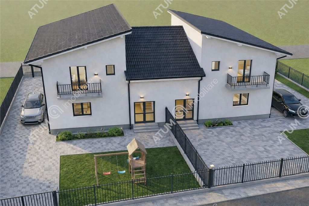 De vanzare casa compusa din Parter Etaj Pod, alcatuita din 5 camere, in suprafata totala de 153 mp, pozitionata la pe un teren generos de 278 mp, localizat in Selimbar-Mohu. Imobil este situat pe 278 mp dintre care amprenta casei masoara 76 mp iar terenul total liber este de 201 si are deschidere de 12,50 m. Accesul auto se poate face atat prin fata cat si prin spatele curtii. Casa are suprafata utila de 122 mp si este compusa din: Parterul este compus din camera de zi 23.22 mp unde poate fi amenajat si un dinning, o camera de 8.78 mp unde se poate amenaja atat un birou cat si un dormitor, baia de 5.53 mp amenajata pentru cabina de dus, bucatarie separata de 23.85 mp cu acces la o camara, un hol de 1,98 mp si un hol de acces unde poate fi amenajata zona de primire cu pantofar si cuier. Etajul este alcatuit din 3 dormitoare de 14,78 mp, 13,12 mp si respectiv 12,16 mp, o baie de 4.29 mp dotata cu geam de aerisire si amenajata pentru cada si un hol generos de 8.51 mp prin intermediul caruia se face accesul in fiecare incapere si prin intermediul acestui hol se face accesul in podul casei prin intermediul unei scari retractabile. Separat de suprafata utila a casi dispune de un balcon de 4,50 mp la etaj in care accesul se face dintr-un dormitor si hol iar in al doilea balcon de aproximativ 3 mp in care accesul se face din alt dormitor iar podul disponibil se desfasoara pe intreaga suprafata a etajului. Casa face parte dintr-un complex modern de 28 de case identice, situate pe o strada privata cu dublu sens si inchisa cu bariera, loc privat de joaca pentru copii. Parcarea se realizeaza pe cele doua locuri de parcare amenajate in curtea proprie. Casa se va preda la alb in interior cu dotari si finisaje dupa cum urmeaza iar exteriorul complet finisat la cheie: -Centrala proprie pe gaz in condesatie cu senzor de gaz si incalzire in pardoseala cu distribuitoare separate pentru fiecare nivel; -Tamplarie PVC marca Salamander cu geam termonan 7 camere 3 foi de sticla LOW-E; -Usa de acces din PVC izolatoare termic si fonic; -Pod izolat cu vata minerala de 20 cm grosime; -Zidari dubla intre case cu grosimea de 70 cm; -Pereti tencuiti ( tencuiala var-ciment ), gletuiti si zugraviti; -Poarta auto si pietonal pregatite cu instalatie electrica pentru interfon si deschidere automatizata; -Instalatii electrice cu tablou general individual si sigurante pentru consumatorii de putere, doze, dulii, instalatii pentru curenti slabi ( TV, Telefon, Internet ); -Utilitati conectate care includ gaz, curent, apa si mini statie de epurare pentru fiecare locuinta locativa. -Contorizari individuale si contoare montate pentru Gaz, Curent si Apa; -Terenul se va preda imprejmuit, poarta auto si poarta pietonala; Din punct de vedere structural aceasta este edificata pe structura portanta cu stalpi si grinzi din beton armat, zidarie cu grosimea de 30 cm, anvelopat termic la exterior cu polistiren de 10 cm grosime, tencuit si zugravit cu vopsea lavabila alba siliconata de exterior. Acoperisul este tip sarpanta cu invelitoare din tigla marca Bramac care include tot sistemul de tigla, burlane, jgheaburi, parazapezi si folie anticontens. Valoarea de achizitie este de 190.000 euro cu TVA de 21% inclus, aceasta se poate achizitiona prin accesarea unui credit bancar. ID intern: 3418.