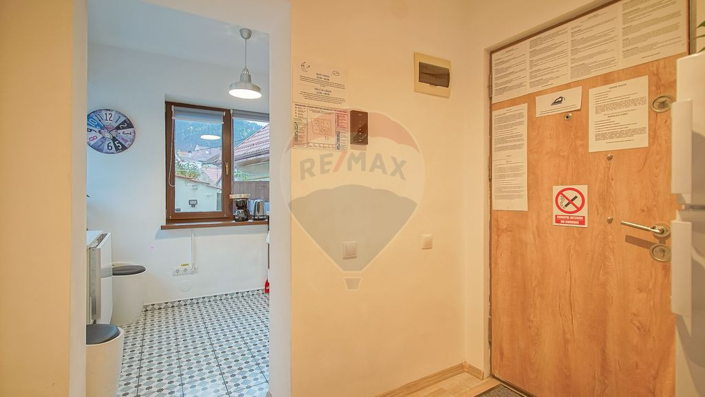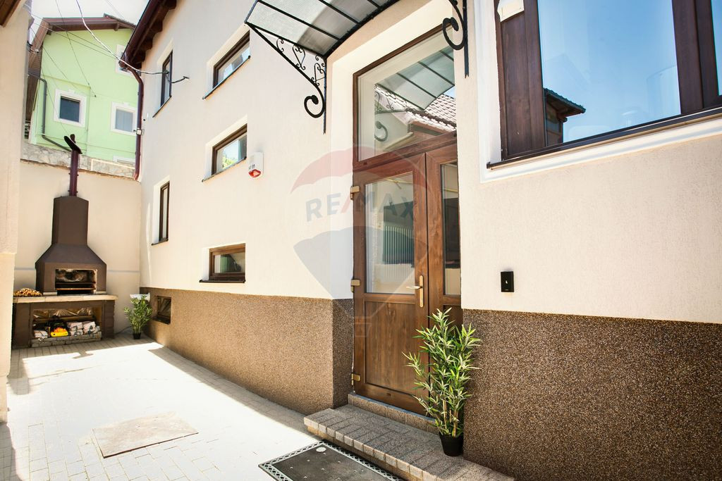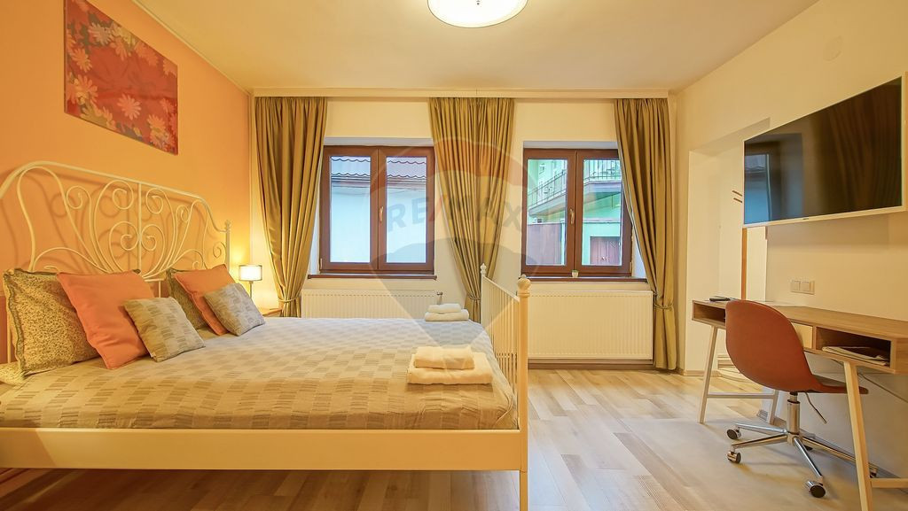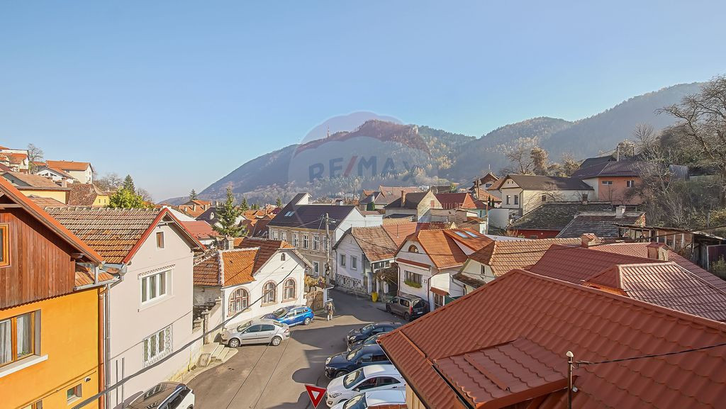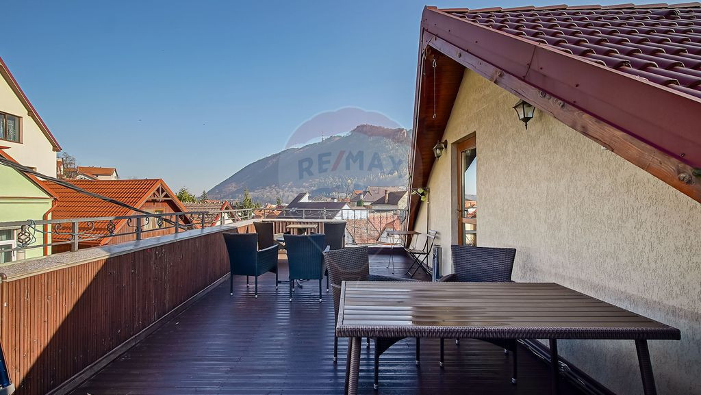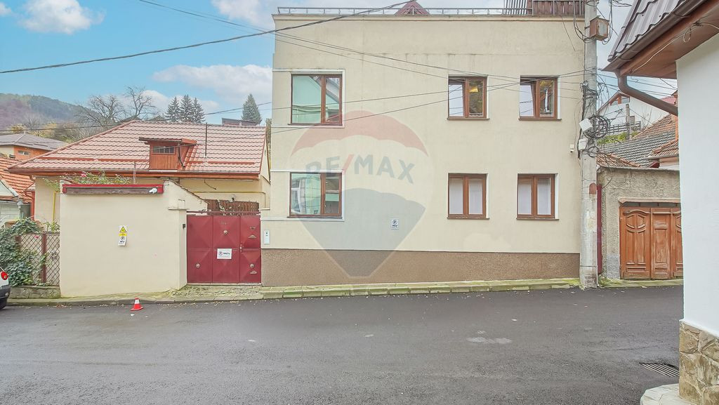 Sunt Daniela Erdos consultant imobiliar in cadrul agentiei RE/MAX Central Brasov si azi vă invi sa descoperiti o proprietate rar intilnita pe piață situata intr-o zona centrala și foarte liniștită a orasului Brasov, într-un cadru pitoresc cu vedere spre Tâmpa, ideală pentru investiție sau locuinta. Imobilul este structurat pe SUBSOL + PARTER + ETAJ + MANSARDĂ, fiecare nivel fiind configurat cu grijă pentru a oferi confort maxim, luminozitate și intimitate. Proprietatea include 5 studiouri complet utilate, fiecare cu baie proprie, chicinetă sau bucătărie, mobilier modern și finisaje de calitate, cladirea fiind renovata in totalitate. Descriere niveluri: SUBSOL Acces independent Spațiu tehnic + zonă de depozitare PARTER Hol de acces comun Două studiouri distincte: Studio 1 (dreapta) – hol, bucătărie complet utilată, cameră spațioasă, baie modernă Studio 2 (stânga) – cameră cu chicinetă (în schițe trecută ca dressing), cameră matrimonială, baie. ETAJ Două studiouri foarte luminoase: Studio 3 (dreapta) – cameră generoasă, bucătărie complet utilată, baie Studio 4 (stânga) – cameră cu chicinetă (în schițe dressing), cameră principală, baie MANSARDĂ Studio open-space cu chicinetă, baie Acces la terasă circulabilă (rooftop) – un spațiu excelent pentru relaxare, cu priveliște superbă asupra orașului și munților Dotări generale ale clădirii Ferestre mari – lumină naturală excelentă Bucătării complet mobilate și utilate (aragaz/plită, cuptor, frigider, hotă, cuptor microunde, cafetieră etc.) Băi moderne cu cabine de duș, finisaje actuale, Sisteme de incalzire centralizate, Mobilier modern, Spatiu depozitare subsol, Curte, Parcare, loc de depozitare magazie in curte, Acces facil, Strada linistita. Ideal pentru: Investitori (proprietatea generează imediat venit pasiv — închiriere pe termen scurt sau lung), Cabinete/birouri, Mini-hotel/pensiune boutiqe, locuinta. Puncte forte ale proprietății 5 unități independente Rooftop / terasă circulabilă – un mare avantaj urban 2 locuri de parcare in curte Grad de acoperire mare 87% , peste 1977 de review-ri pozitive.Se vor putea preda rezervarile in curs pe urmatoarele 6 luni. Certificat de clasificare existent de la Ministeru Turismului ! Priveliște către munți, Strada extrem de linistita aproape de centru, Proprietate ingrijita, renovata complet, Zona cu cerere mare pentru inchiriere in regim hotelier. Pentru mai multe detalii, va invit la o vizionare !