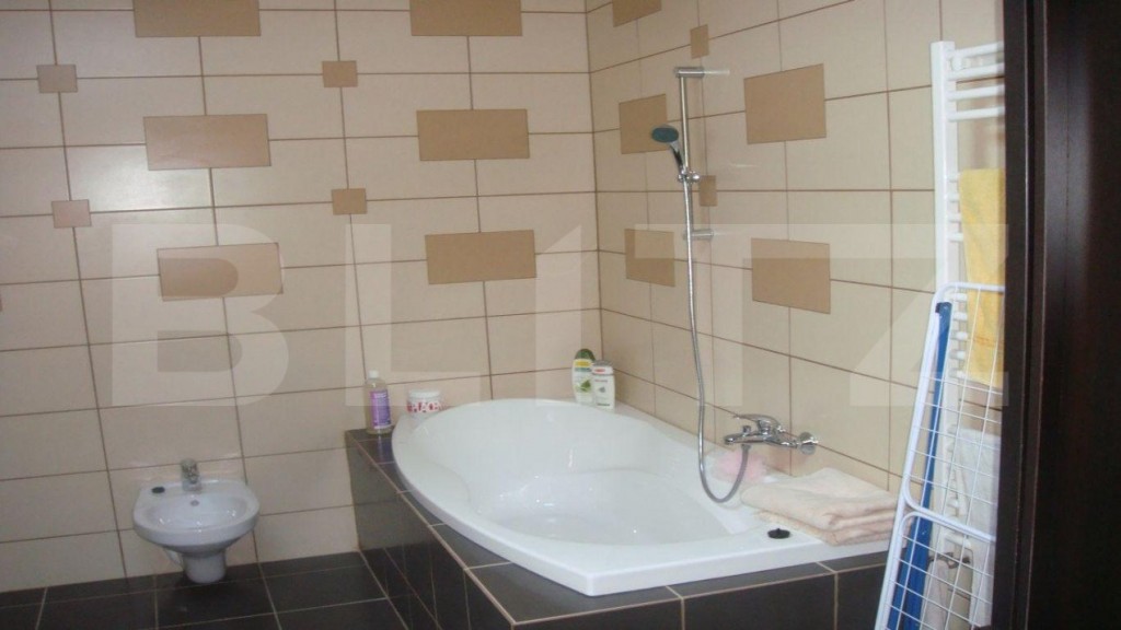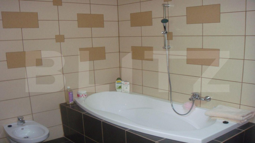????Blitz va propune spre vanzare o casă cu 7 camere in curte proprie, construita in 2011 pe un teren in suprafata de 859 mp, casa avand o amprenta la sol de 198 mp. Casa e alcatuita din doua nivele si o mansarda, cu o suprafata totala de 300 mp, acoperita cu tabla tip tigla. Parterul este compus din doua garaje (60 mp), hol acces, living(35 mp), bucatarie (12 mp), dormitor (12 mp), baie (14 mp), hol acces spre garaje, camera tehnica si camera pentru alimente. Etajul este compus din hol si 2 dormitoare+1 dormitor matrimonial cu suprafete de de 20, 22 si 26 mp, fiecare avand in componenta dressing si baie proprie. Ultimul nivel, mansarda, are in componenta un birou si o incapere utila ca zona de depozitare sau zona de relaxare ( aprox 60 mp ambele). Scara de acces spre nivelele superioare este realizata din beton si acoperita cu trepte din fag si parchet melaminat, Curtea are o suprafata de aproximativ 660 mp , din care aproximativ 450 mp pavata cu pavaj de grosime 8 mm, restul spatiu verde ,si are in componenta si un foisor in partea din spate a casei de aproximativ 15-20 mp. Proprietatea este imprejmuita cu garduri din caramida acoperite cu tencuiala decorativa , accesul pe proprietate se face printr-o poarta actionata electric cu o lungime de 6 m pentru auto, si poarta pietonala. Casa se vinde complet mobilata si utilata. ☎️Contactati-ne pentru mai multe detalii și pentru a programa o vizionare! Cod ofertă / ID BLITZ: P95818 Id intern: P95818
