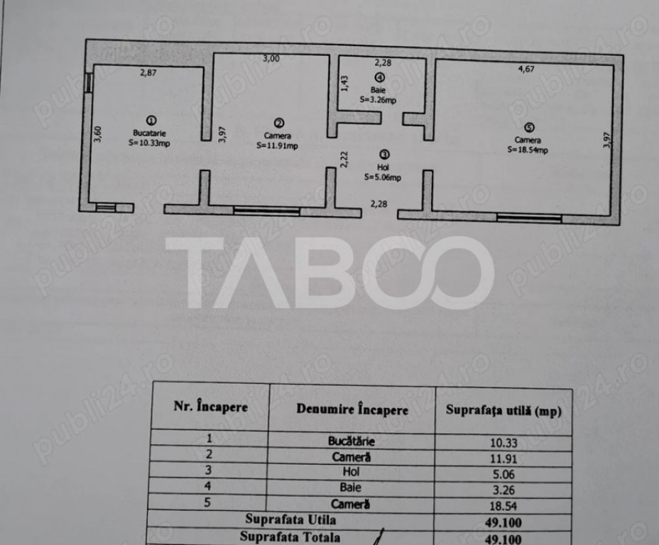 Ai visat mereu la propria ta casa, dar nu vrei sa pierzi timp si bani cu renovari? Acum ai ocazia sa te muti imediat intr-o casa complet mobilata, utilata si renovata, perfecta pentru tine, la pret de apartament! Locuinta decomandata, cu 2 camere spatioase, bucatarie moderna separata, baie eleganta si hol generos, ideala pentru confortul tau zilnic. Tot ce ai visat, gata pregătit pentru tine, fără griji sau renovări. Un colț intim unde fiecare detaliu îți aduce confort și libertate. Curte proprie, spațiu luminos și o atmosferă care te liniștește. Ideală pentru un nou început sau o investiție sigură. Casa a fost complet renovata si dispune de: - Acoperis nou din tigla ceramica (2024) – fara griji pentru multi ani - Izolatie exterioara si in pod – economie la facturi - Centrala termica Vaillant (2024) – confort termic garantat - Aer Conditionat - Instalatie electrica noua – siguranta si eficienta - Ferestre Salamander & usi Gealan – luminozitate si izolare termica excelenta - Curtea privata de 40 mp este perfecta pentru o terasa cozy sau un mic colt verde - Curtea comuna de 70 mp permite parcarea a 3 masini, un avantaj rar intalnit! Ce primesti in plus? - Casa se vinde mobilata, cu bucataria complet utilata – fara batai de cap, doar iti aduci lucrurile personale! - Zona linistita si bine conectata, ideala pentru locuit sau investitie imobiliara. - Suprafata utila: 49 mp - Curte privata: 40 mp - Curte comuna: 70 mp (2-3 locuri de parcare) Totul pregatit pentru noul proprietar! Nu rata aceasta sansa! Contacteaza-ne acum si programeaza o vizionare! Pret: 114.000€ Cod ofertă / ID: P23110 Sună-ne acum la 0369.822.820 și află detalii despre această proprietate de vanzare din Sibiu, dar și despre alte proprietăți potrivite pentru tine. Informatii speciale: 1. Descarcă aplicația pe mobilul tau "TABOO Imobiliare" din Apple Store, Google Play sau Huawei AppGallery pentru a afla instantaneu noile proprietăți care intră pe piață. 2. Dacă ai o proprietate pe care vrei să o vinzi sau să o închiriezi, suntem aici pentru tine! Contactează-ne pentru o evaluare gratuită fără obligații și vei descoperi avantajele de a lucra cu o echipă dedicată și experimentată. 3. Dacă vrei sa incepi o cariera de agent imobiliar, suna la 0369.822.820 si programeaza o intalnire pentru a afla toate beneficiile si avantajele. Intră pe TABOO.ro și descoperă cele mai recente oferte, actualizate zilnic. Anunt actualizat in 5 decembrie 2025. Id intern: P23110