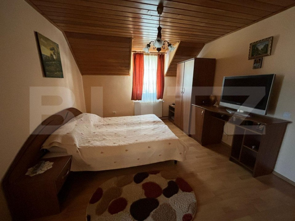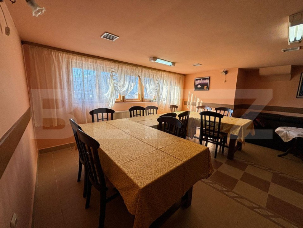 Vă prezintăm o fermecătoare casă de vacanță cu regim de inaltime P+1+M situată în Vatra Moldovitei, un loc ce îmbină tradiția autentică cu confortul modern. Cu o suprafață generoasă de 265 de metri pătrați, această proprietate impresionantă oferă 7 camere spațioase și 5 băi, fiind ideală pentru petrecerea timpului cu familia și prietenii. Priveliștea panoramică oferită de terasele și balcoanele cu o suprafață totală de 60 de metri pătrați adaugă un plus de eleganță și relaxare, creând un cadru perfect pentru a savura răsăriturile și apusurile spectaculoase ale zonei. Cu un teren generos de 8900 de metri pătrați, această casă oferă o curte imensă, perfectă pentru activități recreative și relaxare în aer liber. În grădina bine îngrijită, veți descoperi un foisor amenajat, ideal pentru momente de relaxare și socializare într-un cadru natural. Pentru cei care iubesc gătitul în aer liber, proprietatea include un grătar barbecue, pregătit pentru seri de distracție culinară în mijlocul naturii. Magaziile asigură spațiu suplimentar de depozitare pentru echipamente sportive sau alte obiecte personale. Cu o centrală termică nouă, veți beneficia de confort termic în orice sezon, asigurându-vă că fiecare ședere este plăcută și relaxantă. Această proprietate de vis este situată într-o zonă turistică înfloritoare, oferind acces ușor la atracțiile locale, tradițiile autentice și frumusețea naturală a Vatrei Moldovitei. O oportunitate unică pentru cei care caută o casă de vacanță elegantă și confortabilă în inima naturii autentice. Cod ofertă / ID BLITZ: P101036 Id intern: P101036