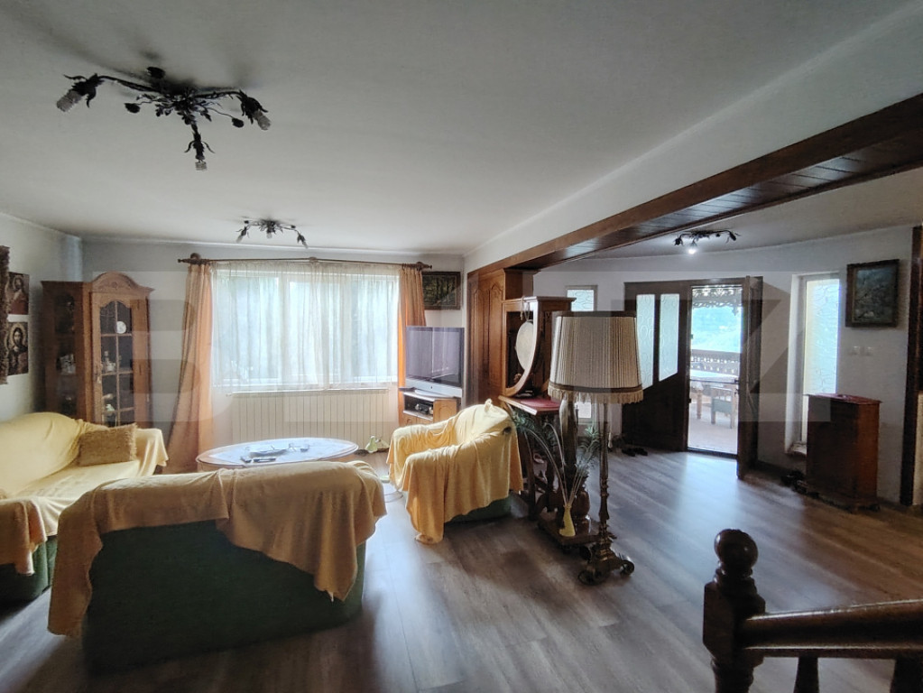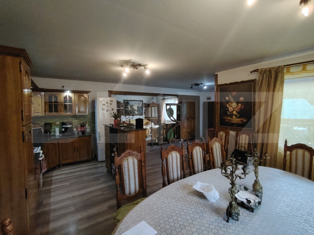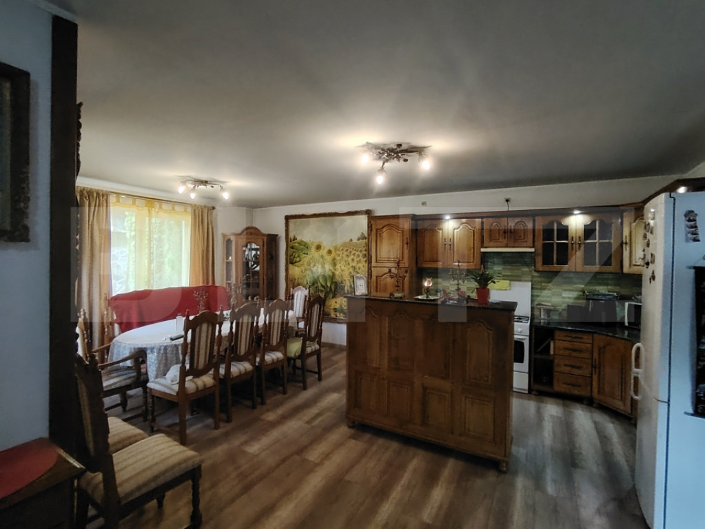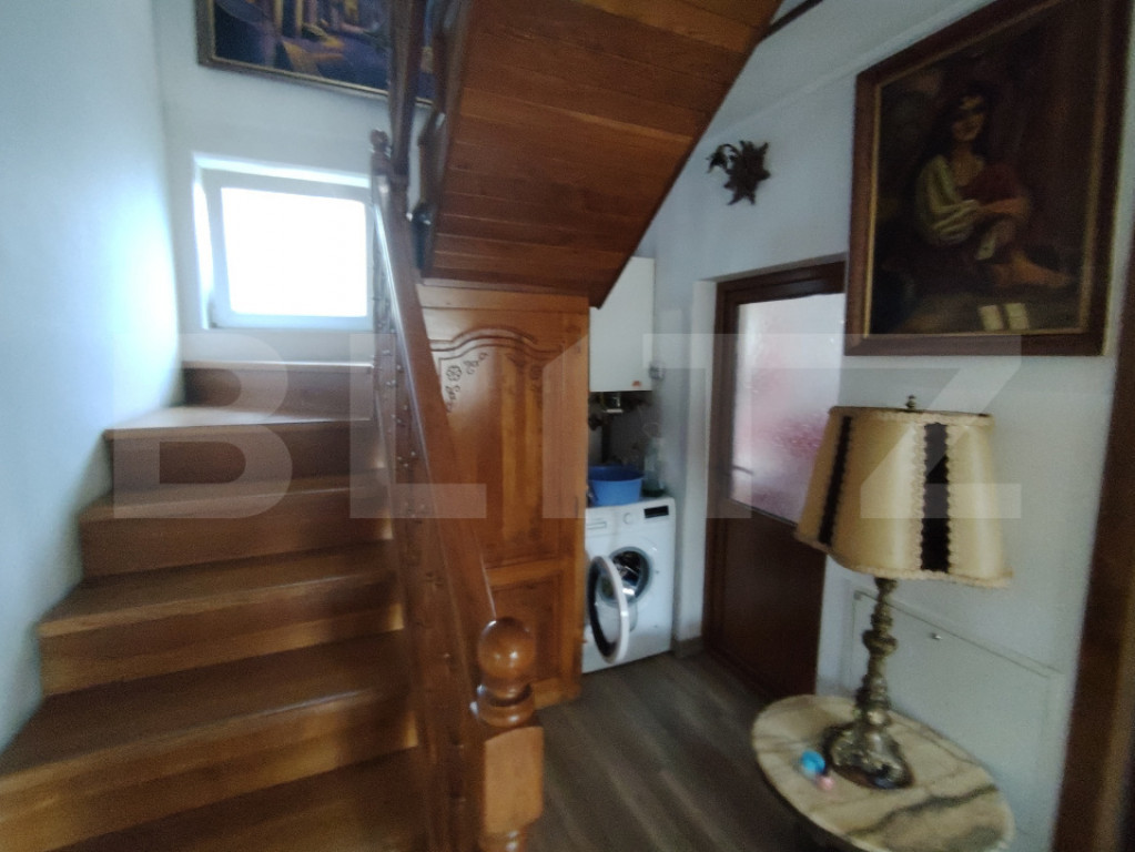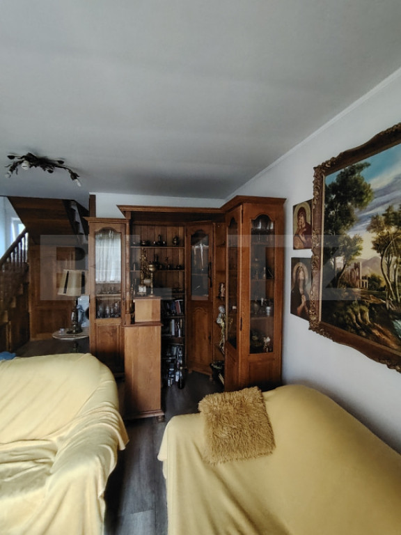 BLITZ vă propune spre vânzare o casă spațioasă și primitoare, amplasată într-o zonă liniștită a municipiului Tarnaveni, ideală pentru o familie care își dorește confort, intimitate și un cadru natural deosebit. Casa are o suprafață utilă de 185 mp și este edificată pe un teren generos de 1.090 mp. Construcția, realizată în anul 2000, are o fundatie solidă din beton de 90 cm, pereți din cărămidă de 30 cm și izolație exterioară cu polistiren de 10 cm, oferind un confort termic eficient. Compartimentare: - Parter: open-space compus din living, dining-room si bucătărie, precum si o baie și un spațiu de depozitare. - Etaj: 3 dormitoare, 1 baie, 1dressing și 2 balcoane. - Terasă exterioară de cca 40 mp. Interiorul este decorat cu mobilier din lemn masiv de calitate și elemente artistice autentice: tablouri și piese decorative. Exterior: - Clădire barbeque zidita complet utilată (grătar, plită, ceaun) - Platou de relaxare de cca 60 mp marginit de un zid la partea de vest dotat cu bancuțe zidite - Grădină superb amenajată cu tuia, brăduți, două livezi, zonă de legume, pregătire pentru solar, mini-cascadă în construcție - Magazie anexă de 12 mp Extra: Casa se vinde complet mobilata si poate fi achiziționată împreună cu o proprietate învecinată, pe un teren total de 1.440 mp, la prețul pachet de 330.000 euro. O alegere perfectă pentru cei care apreciază calitatea construcției si a mobilierului interior liniștea și natura! Vă așteptăm cu drag la vizionare! Cod ofertă / ID BLITZ: P150512 Id intern: P150512