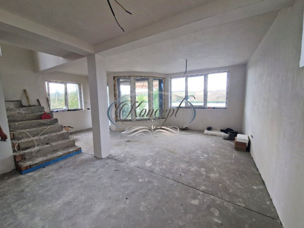 Koncept Imobiliare va ofera spre vanzare o casa individuala in Chinteni, situata in imediata apropiere a lacului. Aceasta are o suprafata utila de 180 mp, fiind compartimentata astfel: Demisol- garaj, baie, spatiu tehnic, hol, dormitor cu baie și dressing; parter- living, bucatarie, baie, spatiu tehnic si terasa; etaj: 2 dormitoare, baie, dressing si o terasa de 40 mp. Casa are un teren aferent de 250 mp, cu posibilitatea de achizitionare a inca 250 mp. Aceasta se vinde la stadiul de semifinisat, cu centrala termica proprie, geamuri termopan, incalzire prin pardoseala si calorifere si toate instalatiile trase pe pozitie. Recomandam casa celor care isi doresc sa aiba parte de o casa intr-o zona linistita cu o panorama superba spre lac. Pentru informatii suplimentare, programarea unei vizionari sau pentru a afla oferta noastra completa, nu ezitati sa ne contactati telefonic, prin e-mail sau la sediul agentiei noastre de pe str. Aviator Badescu nr. 19, Cluj-Napoca. Id intern: P18899