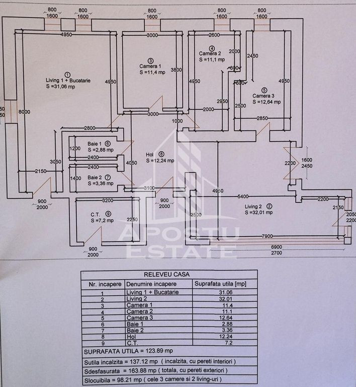 Apostu Estate va propune spre vanzare o casa superba in localitatea Dinias, la 20 de km de Shopping City Timisoara. Gardul inalt de 3m in jurul proprietatii ofera sentimentul de intimitate, iar salcamii din curte si tuia maturi de 20 ani dau grandoare curtii. Pentru confort maxim, imobilul beneciaza si de o piscina mare, aceasta necesitand reconditionare completa. Imobilul este format din 2 constructii: - Casa mare formata din 2 living-uri, 3 dormitoare, bucatarie si 2 bai cu o suprafata de 123.89 mp utili - Bucatarie de vara formata din o camera, bucatarie si baie + pod locuibil cu o suprafata de 58.72 mp utili Suprafata terenului este de-a dreptul generoasa, 2050mp formata din 2 parcele, fiecare cu numar de casa propriu. Confortul termic este asigurat de cetrala termica electrica cu incalzire prin calorifere, iar peretii grosi si izolatia asigura cheltuieli mici. Ar fi multe de spus despre aceasta proprietate, dar va invitam la o vizionare sa descoperiti toate avantajele pe care le ofera. ID intern: 2373208