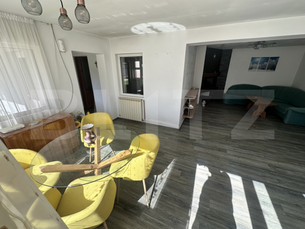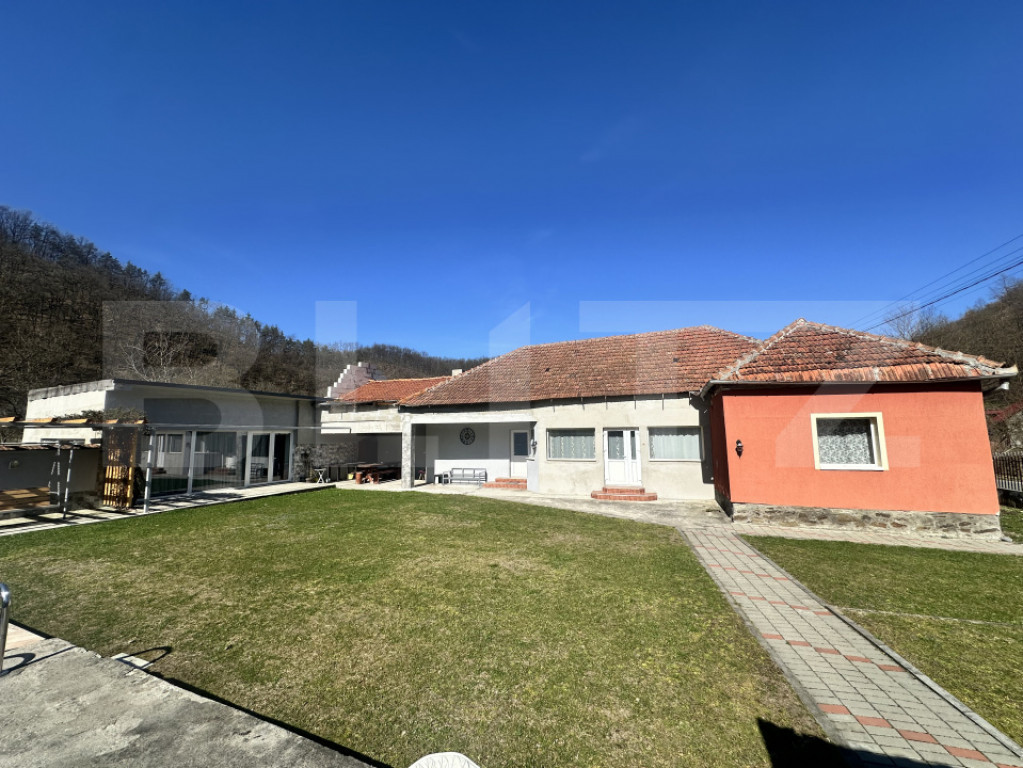 Blitz vă propune spre vânzare, în exclusivitate, o proprietate deosebită situată în localitatea Lesnic, la doar 15 minute de Deva, ideală atât pentru locuință permanentă, cât și pentru casă de vacanță. Casa este compartimentată practic și dispune de două dormitoare, un living luminos, bucătărie și baie, oferind un spațiu confortabil pentru întreaga familie, iar la etaj se află un pod cu posibilitate de mansardare, oferind multiple opțiuni de extindere. Proprietatea impresionează prin curtea foarte generoasă și amenajată, unde regăsim un garaj, o piscină și un salon superb de aproximativ 38 mp. Acest spațiu este compus din living, bucătărie și baie. Salonul este foarte bine vitrat cu geamuri termopan, oferind o priveliște superbă spre curte și piscină și multă lumină naturală. În plus, proprietatea beneficiază de un teren intravilan în suprafață de 3.298 mp și dispune de toate utilitățile necesare. O proprietate ideală pentru cei care își doresc liniște, spațiu generos și confort, într-o zonă accesibilă, aproape de oraș. Cod ofertă / ID BLITZ: P166562 Id intern: P166562