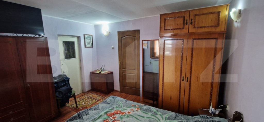 Blitz va propune spre vanzare casă situată într-o zonă liniștită de case din Craiova, zona Romanesti, ideală atât pentru locuință, cât și pentru investiție. Proprietatea dispune de un teren generos de 872 mp, cu deschidere la stradă publică asfaltată și acces la toate utilitățile: apă, canalizare, gaze și curent electric (220V și 380V). Compartimentare casă: - 3 dormitoare - 2 băi (un dormitor cu baie proprie) - 2 bucătării - 1 living open space - 1 terasă închisă cu PVC de aproximativ 24 mp Casa are acoperiș din țiglă, izolație exterioară și a fost construită în 1965, fiind renovată în 2005.Încălzirea este asigurată de centrală termică pe gaz. Datorită structurii actuale, casa poate fi ușor împărțită în două apartamente cu 2 camere, fiecare cu baie și bucătărie proprie, fiind potrivită pentru locuit de două familii sau pentru închiriere. Construcții și facilități suplimentare -construcție din tablă pe structură metalică, racordată la curent trifazic, cu destinație comercială – poate fi transformată ușor în garaj -terasă acoperită de aproximativ 50 mp lângă această construcție -două dependințe în partea din spate a curții Avantaj major: -Forma și dimensiunea terenului permit construirea unei locuințe noi în partea din spate a curții, fără a fi necesară demolarea casei existente. -Proprietatea este potrivită atât pentru locuință familială, cât și pentru investiție sau activitate comercială. Va asteptam la vizionare! Cod ofertă / ID BLITZ: P166973 Id intern: P166973