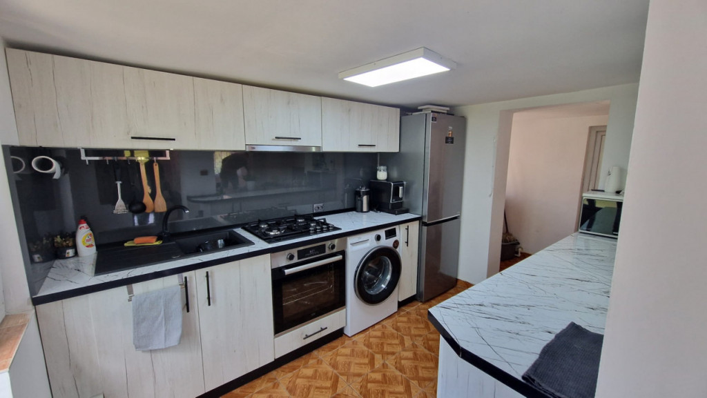 Casă de vânzare - 74 mp - demisol și parter - decomandată - teren de 1558 mp - deschidere 25 ml - situat în sat Barza Domina Imobiliare propune spre vânzare casă situată în mijlocul naturii în Comuna Dănești, sat Barza. Situată la doar 8 km distanță de orașul Târgu Jiu, această casă oferă toate condițiile necesare pentru un trai confortabil, fiind înconjurată de natură și verdeață. Caracteristici principale: Suprafață utilă: 74 mp Compartimentare: decomandată Construcție finalizată în 2007 Regim de înălțime: demisol și parter Proprietatea include: 2 dormitoare, living open space cu bucătăria ce este complet mobilată și utilată cu electrocasnice marca Beko, baie, 2 holuri, 2 terase ideale pentru relaxare, o mansardă ce poate fi amenajată dispunând de multiple spații de depozitare, 2 beciuri pentru depozitare, garaj de 21 mp + anexă depozitare, camera centralei, foișor cu zonă de grătar și toaletă exterioară amenajată. Dotări și finisaje: Gresie, faianță, parchet laminat Tâmplărie PVC cu geam termopan Încălzire asigurată de centrală pe peleți și o sobă de teracotă Izolație termică exterioară Porți acționate electric Teren: Suprafață totală: 1.558 mp Deschidere la stradă: 25 metri liniari Curte îngrijită, cu arbuști ornamentali, pomi fructiferi, viță de vie și grădină. Imobilul este conectat la rețelele de apă și electricitate, dispune de fosă septică și are, în plus, o fântână funcțională în curte. Proprietatea este împrejmuită de pădure, oferind o intimitate deosebită și un peisaj natural relaxant. Localizare: Zona este foarte liniștită, ideală pentru locuit permanent sau ca reședință de vacanță. Acces facil și comunitate primitoare. Puncte forte: Amplasament deosebit, cu aer curat și peisaj superb. Teren generos, ideal pentru grădinărit sau relaxare în aer liber. Poziția și împrejurimile permit atât locuire confortabilă, cât și valorificare turistică. ID/COD ofertă: P973 Vrei să vezi mai multe oferte similare? Ne poți contacta la numărul de telefon 0737 800 000 sau pe domina.ro. Id intern: P973