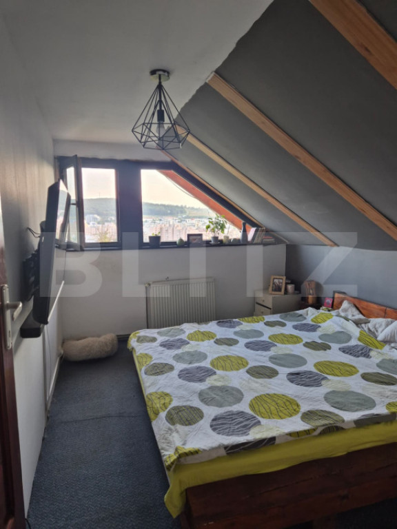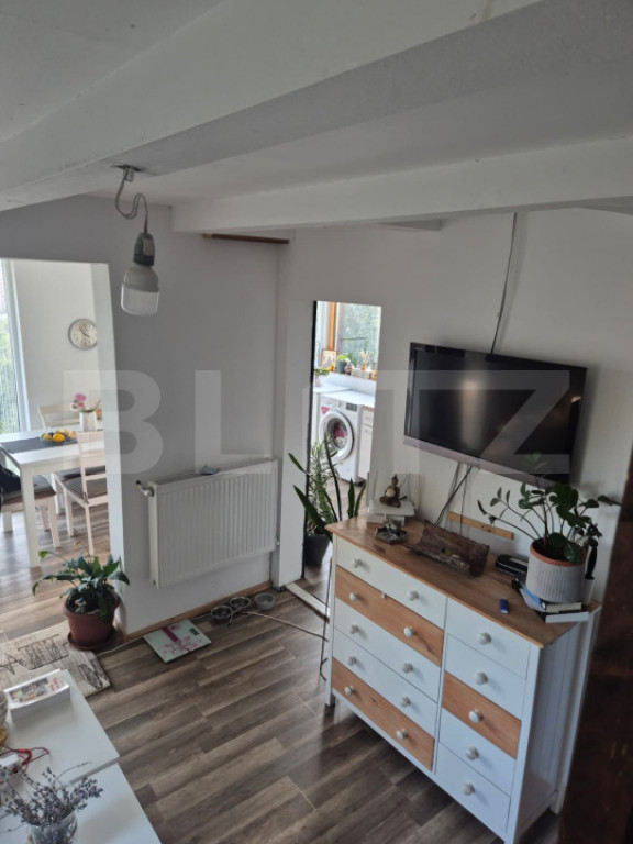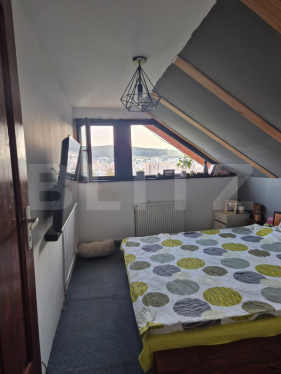 Blitz imobiliare va ofera la vanzare o casa situata in cartierul Tudor Vladimirescu, pe strada Negoiului. Casa este construita din lemn cu izolatie esterioara si este compusa din parter si mansarda. La parter gasim un living cu bucatarie open space, o baie si hol acces iar la mansarda avem doua dormitoare, un balcon si un spatiu care poate fi amenajat in baie. Privelistea este panoramica, casa este ideala pentru persoanele care doresc accesul la toate facilitatile orasului dar si liniste si o priveliste de vis. Accesul la casa se face pe o poteca privata iar parcarea se face pe strada Negoiului la mica distanta de proprietate. Pentru cei interesati sa aiba acces direct cu masina in curte se poate cumpara drept de servitute auto de la vecin. Va asteptam la vizionare! Cod ofertă / ID BLITZ: P152863 Id intern: P152863
