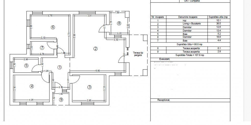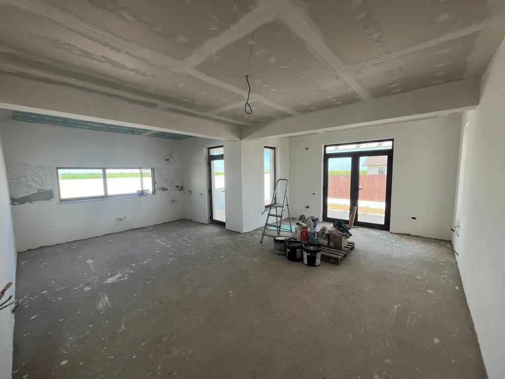 Agenția Acord Imobiliar vă propune la vânzare o casă la sol situată in Cumpăna. Proprietatea are o suprafață de teren de 363mp pe care este construită o casă cu suprafața desfășurată de 137mp, din care suprafata totală utila este de 108mp ()9 sunt teresale). Casa este construită recent și are toate utilitățile conectate la interior (gaz, curent, apă și canalizare). Zidăria exterioară și interioară este de 25cm din cărămidă Porotherm, excepție la pereții băilor unde sunt de 15cm. Casa este înălțată la sol cu 50cm. Ferestre ProEvolution Premium MD cu feronarie MAKO. Acoperiș tabla BILKA. Casa este decomandată, living, bucătarie,3 dormitoare și 2 bai. Casa se vinde la stadiul de alb. Contracost se poate asigura manopera pentru finisajele interioare. Livingul și bucataria sunt open space dar pot fi desparțite prin perete de zidarie sau sticlă. Dimensiunile încăperilor se regăsesc în fotografii. Pentru detalii vă rugăm să ne contactați. Vizionarea proprietății se face doar în urma încheierii Acordului de vizionare.