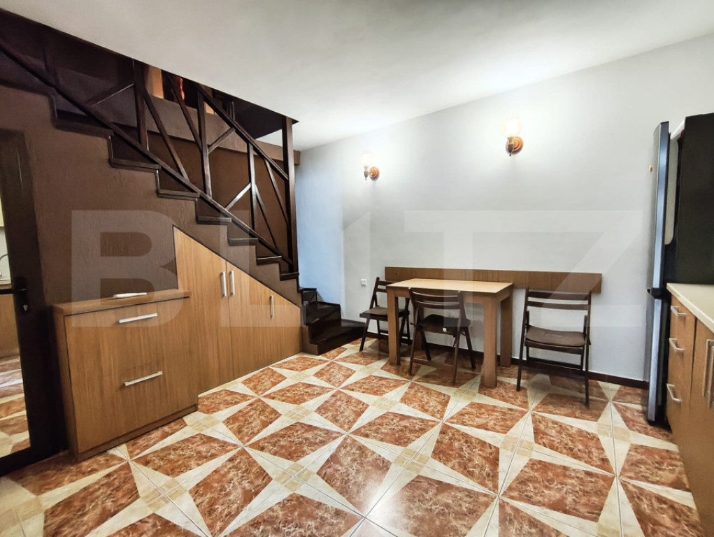 Casa de inchiriat situata in zona ultracentrala, cu acces la curte comuna, dispusa pe 3 nivele si compartimentata practic, ideala pentru o persoana sau un cuplu care isi doreste intimitate si acces rapid catre toate punctele de interes ale orasului. La primul nivel se afla bucataria separata, oferind un spatiu bine delimitat pentru gatit si servirea mesei. La etajul al doilea este pozitionat dormitorul, un spatiu confortabil si luminos, destinat zonei de odihna. Proprietatea beneficiaza si de terasa, un avantaj important pentru zona centrala. Pozitionarea ultracentrala asigura acces imediat catre restaurante, cafenele, magazine, institutii si mijloace de transport in comun. Cod ofertă / ID BLITZ: P164384 Id intern: P164384