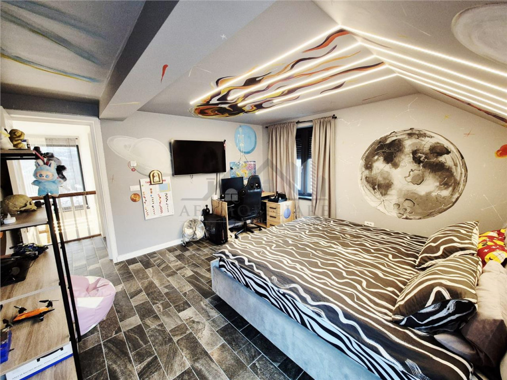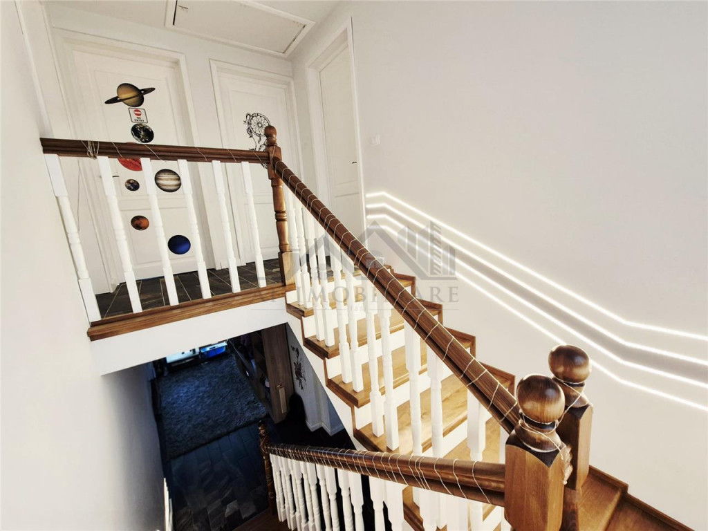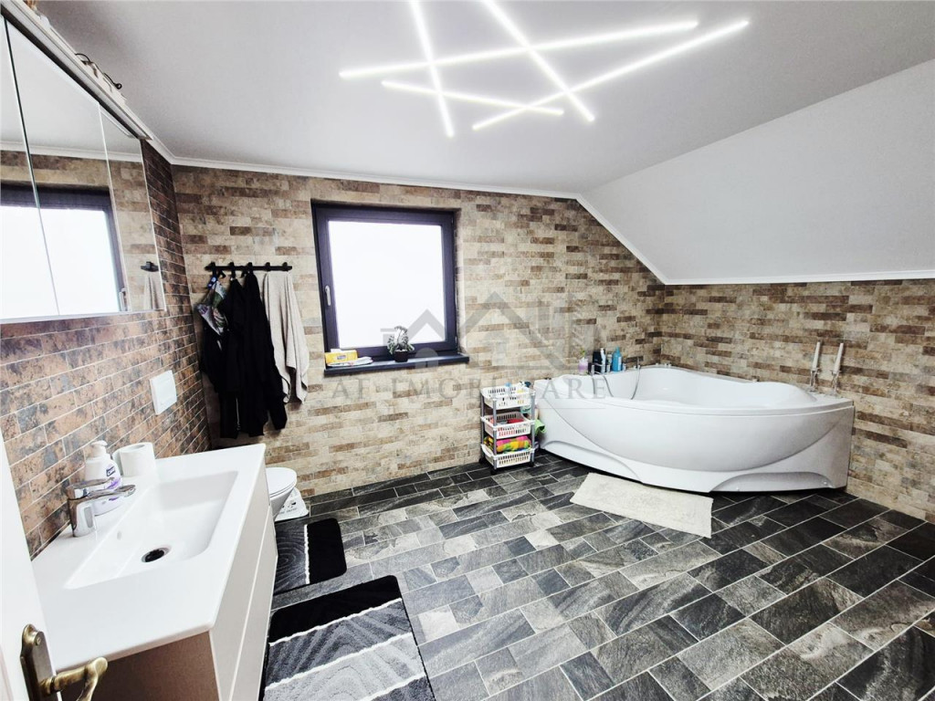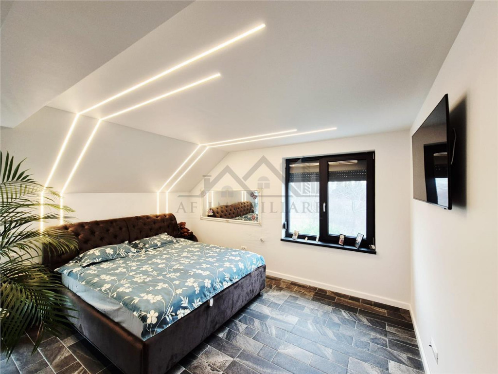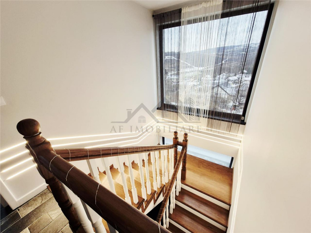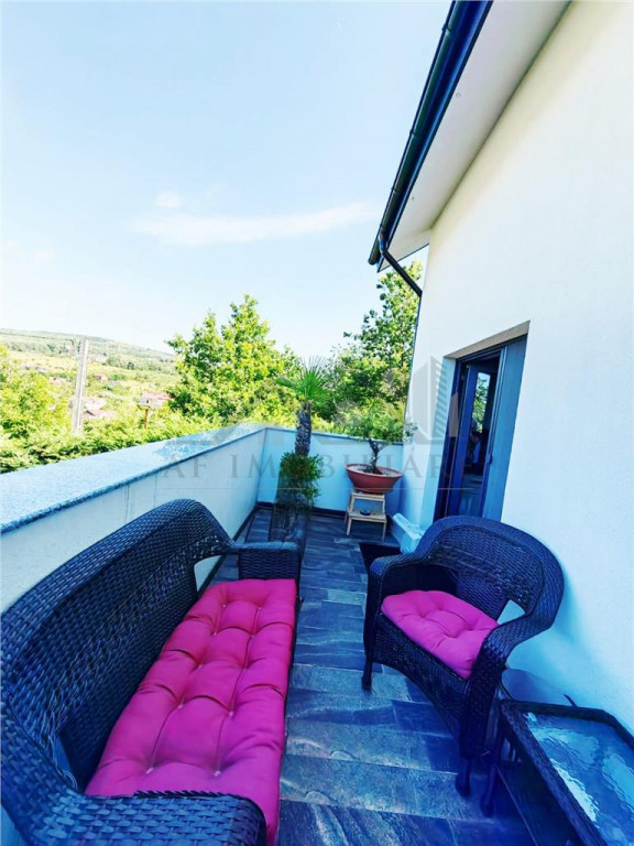 Vila de vanzare in Barnova, situata intr-o zona linistita, cu vedere deschisa catre padure. -Casa este ideala pentru o familie care isi doreste confort, spatiu si intimitate. -Compartimentare casei este desfasurata astfel: -4 dormitoare (un dormitor este transformat in dressing); -bucatarie cu iesire pe terasa; -living luminos, cu iesire catre a doua terasa; -doua bai: una cu cabina de dus si o baie mare cu cada; -garaj generos pentru doua masini plus o camera mare (ideala pentru hobby/depozitare). Suprafete si structura: -demisol: 85 mp; -parter: 65 mp; -mansarda: 85 mp; -pod: aproximativ 60 mp, ideal pentru depozitare. Placa din beton intre fiecare nivel. Terenul are suprafata totala de 980 mp ce este amenajat cu copaci platoni si imprejmuit cu gard viu de leylandii, oferind intimitate si un cadru natural placut. -Utilitati si dotari: Gaz; Apa curenta put cu apa potabila (aprox. 30 m); Canalizare; Energie electrica curent trifazic (3,8); Icirc;ncalzire in pardoseala atat la parter cat si la etaj. -Casa nu a fost construita pentru vanzare, fiind realizata cu materiale de cea mai buna calitate ndash; aspect ce se poate verifica/testa. -Se vinde complet mobilata si utilata, gata de mutare. -Se accepta varianta de schimb imobiliar diferenta. Comision 0%. Pentru mai multe detalii si stabilirea unei vizionari, sunati sau lasati mesaj.