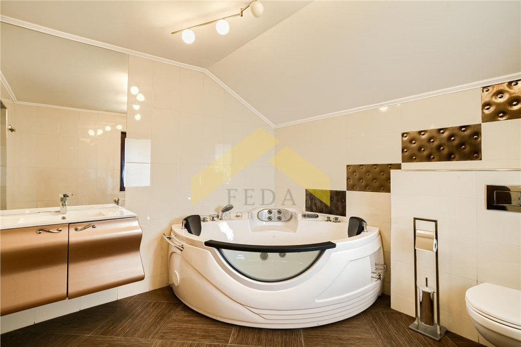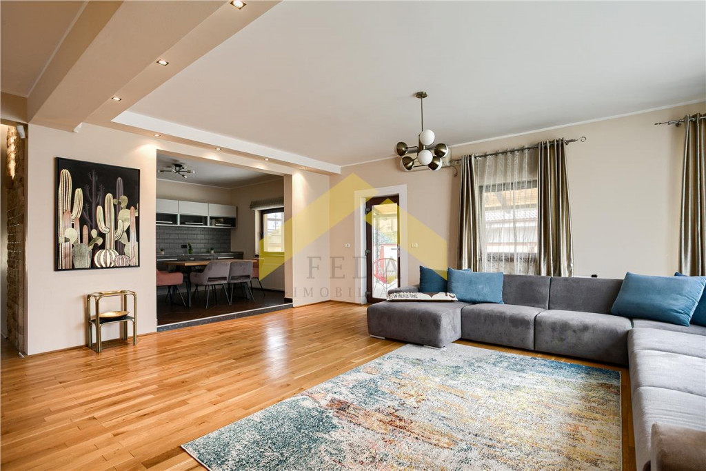 FEDA Imobiliare va ofera spre vanzare o casa cu 5 camere in cartierul Tineretului, la intrare in localitatea Vladimirescu dinspre Arad. Imobilul se afla pe un teren in suprafata de 541 mp cu un front stradal de 18 ml. Suprafata construita a casei este de 260 mp cu un regim de inaltime P 1E.In lateralul casei se afla un garaj cu o suprafata construita 56 mp. Casa este compusa din :La parter: -hol-baie-living -bucatarie deschisa -birou-camera tehnica -o terasa acoperita cu intrare din livingLa etaj: -3 dormitoare-un dressing -un balcon -intrare in pod Dotari: -Centrala proprie -Clima -Masina de spalat vase -Hota-Scari si balustrada din lemn masiv -Parchet din lemn masiv-Fantana forata Utilitati:-Apa-Gaz-Curent-Canalizare Pentru mai multe detalii sau programarea unei vizionari, nu ezitati sa ma contactati telefonic!!Felix Petru-0723 535 000