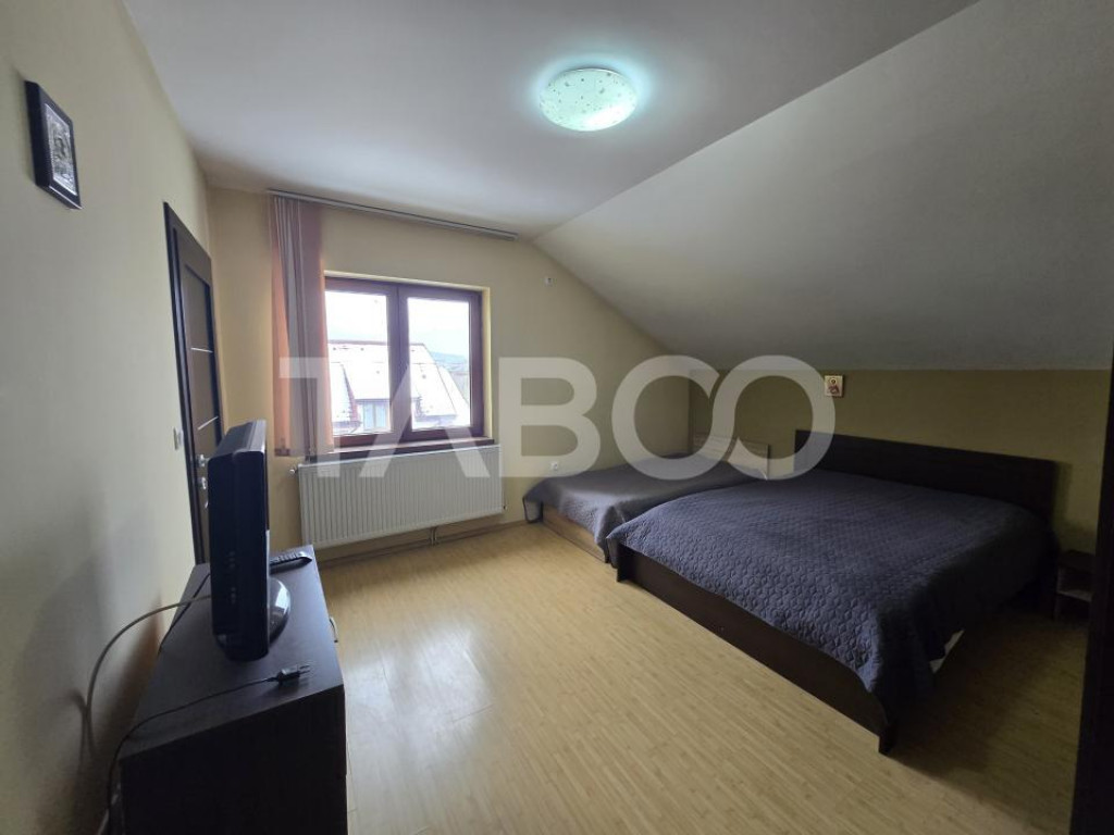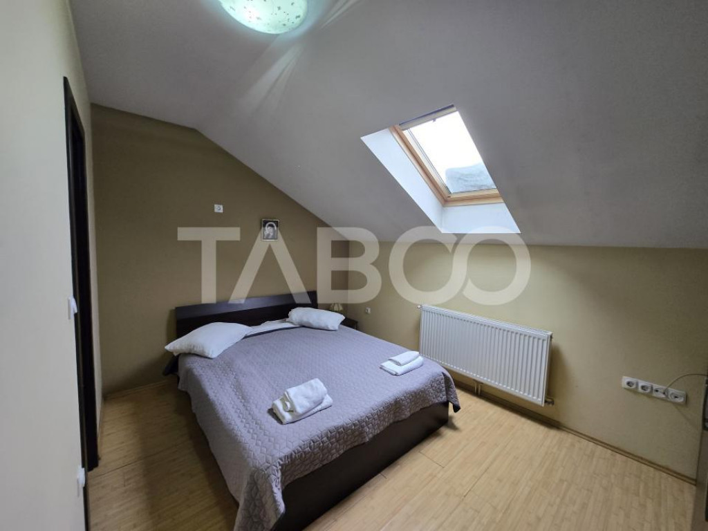Ai un proiect in Sibiu si ai nevoie de cazare pentru echipa ta? TABOO Imobiliare iti propune aceasta casa de inchiriat cu 7 camere in zona Lupeni, Sibiu. Casa de inchiriat din Sibiu este o casa de tip individuala, cu un regim de inaltime Parter + Mansarda. Casa este compartimentata astfel: Parter: - hol, - bucatarie, - 2 camere cu baie proprie; - 1 camera cu baie proprie si dressing; Mansarda: - hol, - 3 camere cu baie proprie; - 1 camera cu baie proprie si dressing; Casa a fost construita in anul 1980, ea fiind renovata in 2020, cu o structura din caramida si sistem de incalzire cu centrala proprie si calorifere. Suprafata construita a casei este de 212 mp, suprafata utila 177 mp, iar terenul are o suprafata totala de 156 mp. Casa este mobilata complet si utilata cu: plita, cuptor, hota, masina de spalat rufe, frigider cu congelator, cuptor cu microunde, espressor de cafea, etc. Finisajele interioare sunt clasice: ~ Usa intrare: metal; ~ Usi interioare: celulare; ~ Tamplarie ferestre: pvc, termopan; ~ Podele: parchet, gresie; ~ Izolatii exterior: exterior. Pret: 1.400€ Cod ofertă / ID: P25821 Sună-ne acum la 0369.822.820 și află detalii despre această proprietate de inchiriat din Sibiu, dar și despre alte proprietăți potrivite pentru tine. Informatii speciale: 1. Descarcă aplicația pe mobilul tau "TABOO Imobiliare" din Apple Store, Google Play sau Huawei AppGallery pentru a afla instantaneu noile proprietăți care intră pe piață. 2. Dacă ai o proprietate pe care vrei să o vinzi sau să o închiriezi, suntem aici pentru tine! Contactează-ne pentru o evaluare gratuită fără obligații și vei descoperi avantajele de a lucra cu o echipă dedicată și experimentată. 3. Dacă vrei sa incepi o cariera de agent imobiliar, suna la 0369.822.820 si programeaza o intalnire pentru a afla toate beneficiile si avantajele. Intră pe TABOO.ro și descoperă cele mai recente oferte, actualizate zilnic. Anunt actualizat in 16 ianuarie 2026. Id intern: P25821