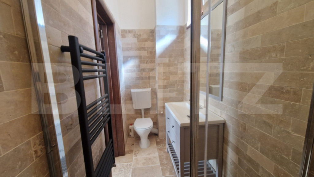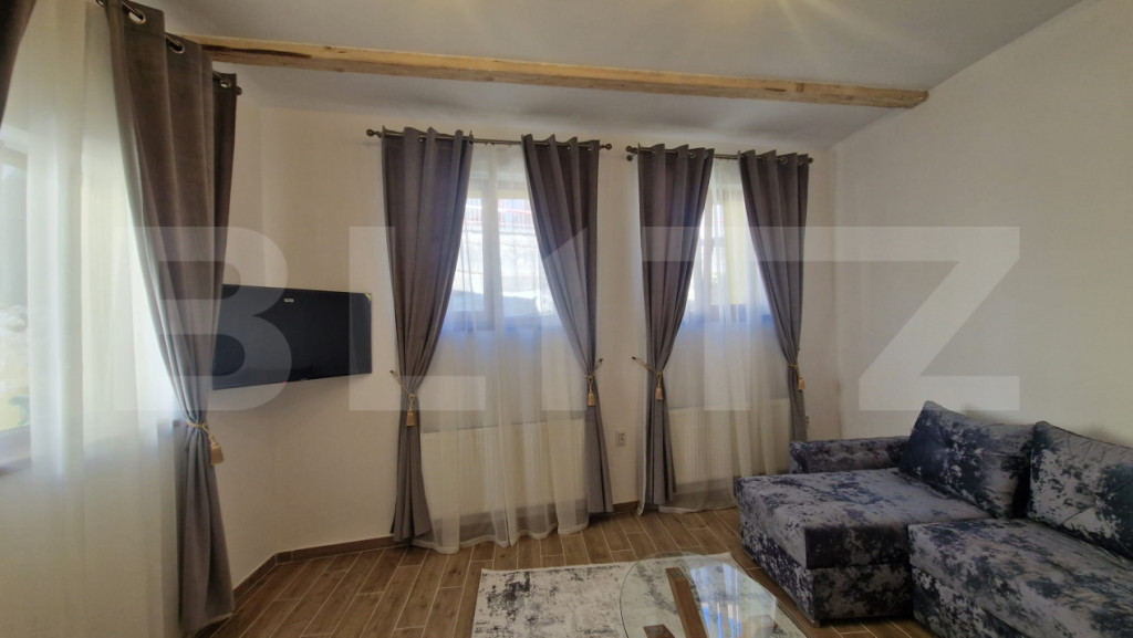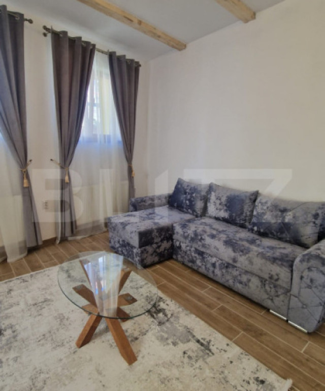Blitz ofera spre inchiriere o casă modernă și primitoare situată în zona Șchei din Brașov, una dintre cele mai apreciate și liniștite zone ale orașului. Proprietatea beneficiază de acces facil cu mașina și este poziționată la doar câțiva metri de stația de autobuz, oferind conexiuni rapide către principalele puncte de interes. Locuința este compartimentată eficient și dispune de 2 camere, un living spațios open-space cu bucătăria complet utilată, baie modernă și o curte mică, dar cocheta, perfectă pentru relaxare. Casa este amenajată la standarde ridicate, cu finisaje de calitate superioară și un design elegant, fiind ideală pentru persoane care caută confort și intimitate. Se acceptă animale de companie de talie mică și medie, ceea ce o face potrivită și pentru iubitorii de animale. In acest caz garantia este dubla adica 1100 euro. Imobilul se închiriază pe termen lung și este situat la aproximativ 500 de metri de Piața Unirii, având în apropiere numeroase facilități precum magazine, restaurante și zone de agrement. Zona este cunoscută pentru atmosfera sa liniștită, curățenia și vecinii prietenoși. Dacă îți dorești o locuință confortabilă într-un cadru deosebit, te așteptăm cu drag la vizionare! Cod ofertă / ID BLITZ: P168096 Id intern: P168096