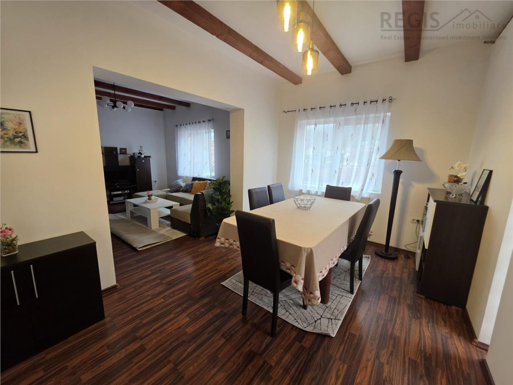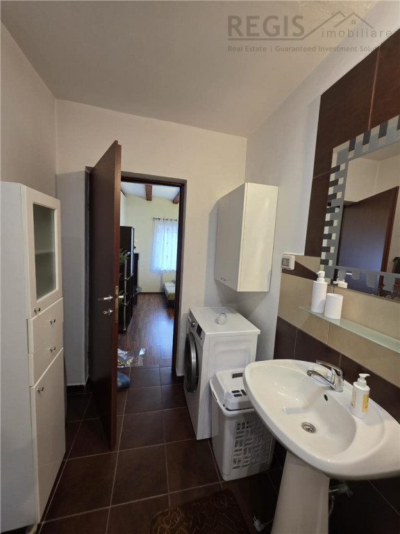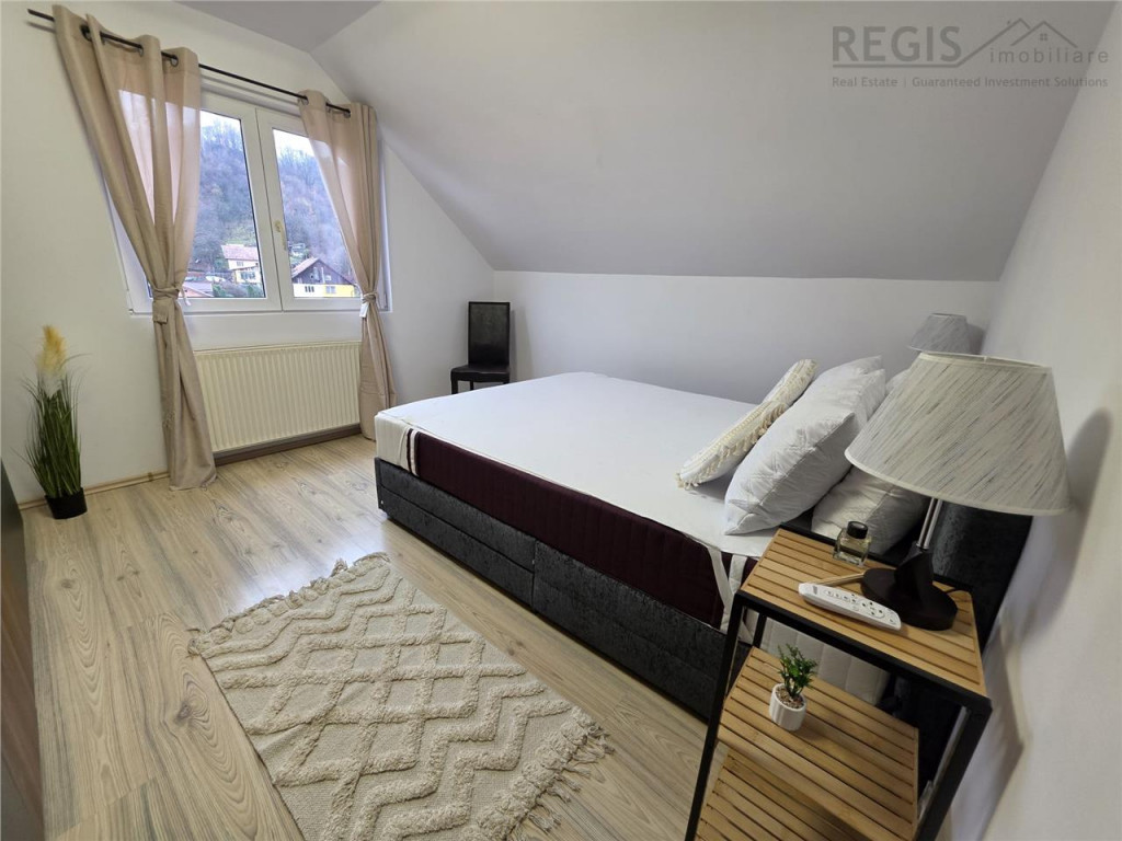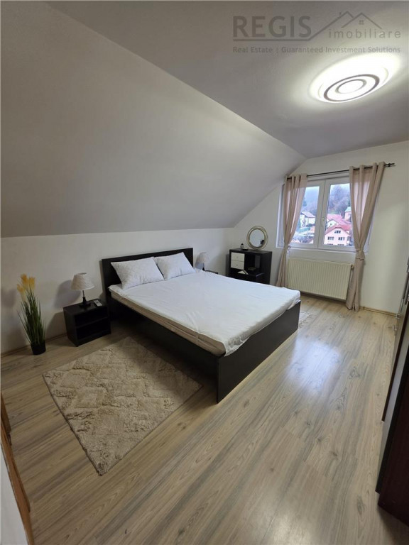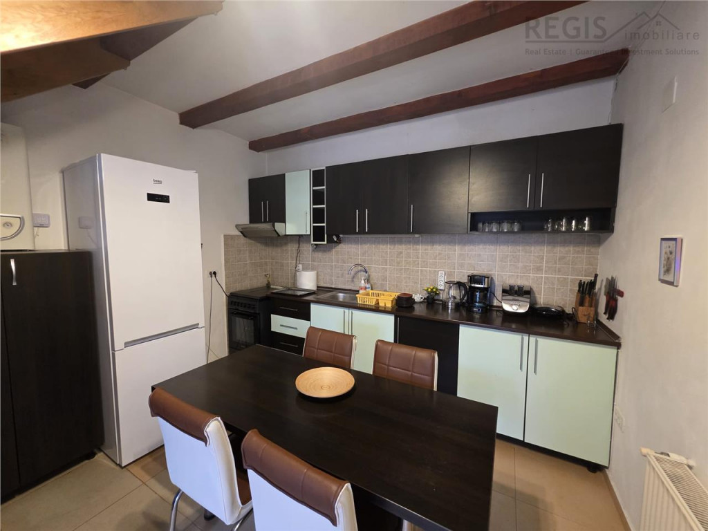 ID Intern:6558 REGIS Imobiliare va propune spre inchiriere o casa cocheta si primitoare in Brasov, situata in pitoreasca zona Schei, una dintre cele mai apreciate si autentice zone ale orasului, la doar 15 minute de mers pe jos de Piata Sfatului. Locatia ofera echilibrul perfect intre liniste, intimitate si acces rapid catre centrul istoric. Statia de autobuz se afla in apropiere, avand conexiuni facile catre orice punct de interes. Proprietatea este ideala pentru cei care isi doresc un camin elegant, bine compartimentat si complet echipat, pregatit pentru mutare imediata. Compartimentare inteligenta si functionala: bull; Parter generos cu living luminos, perfect pentru relaxare sau seri petrecute in familie. bull; Zona distincta de dining, ideala pentru mese rafinate sau intalniri cu prietenii. bull; Bucatarie complet utilata si echipata, gandita pentru confort si eficienta. bull; Baie moderna, amenajata cu bun gust. bull; Terasa cocheta, un spatiu intim pentru cafeaua de dimineata sau momente de relaxare. bull; Mansarda aerisita cu 2 dormitoare confortabile, ideale pentru odihna si intalnitate. bull; Baie suplimentara, practica si bine compartimentata. bull; Hol functional, cu spatii bine organizate pentru depozitare eficienta. Confort si siguranta la standard ridicat: Garaj propriu cu usa automatizata si telecomanda Centrala proprie pe gaz pentru control total al confortului termic Smart TV si internet wi-fi Sistem de paza cu monitorizare si senzori de fum pentru un plus de siguranta Complet mobilata Bucatarie echipata cu frigider, aragaz, cuptor, cuptor cu microunde, cafetiera, toaster, sandwich-maker, ceainic Masina de spalat rufe Aspirator, fier de calcat Multiple spatii de depozitare pentru organizare eficienta Aceasta casa impresioneaza prin atmosfera calda, compartimentarea echilibrata si pozitionarea excelenta intr-o zona cu farmec aparte. Este alegerea ideala pentru persoane care apreciaza confortul, intimitatea si proximitatea fata de centrul orasului. O locuinta care imbina perfect eleganta, functionalitatea si pozitionarea premium gata sa devina noul tau acasa. Se inchiriaza pe termen lung. Nu se accepta animale de companie. Comisionul agentiei este de 50% tva din valoarea unei chirii. Pentru mai multe detalii sau programarea unei vizionari, va stam la dispozitie. Vlad - Agent Imobiliar