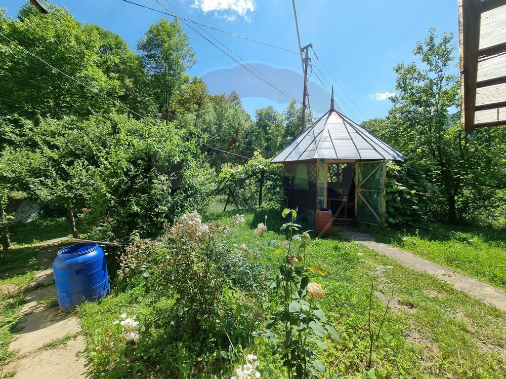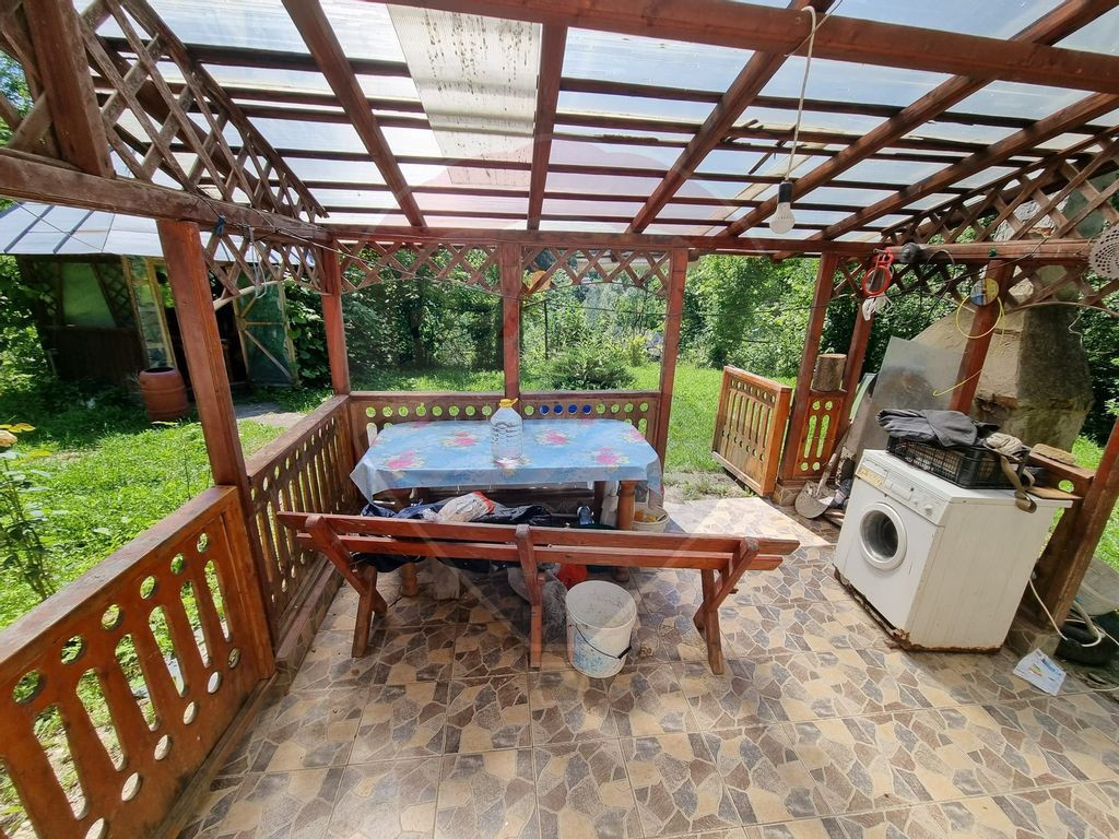 Ti ai dorit un loc de vis in mijlocul naturii?? nici o problema , avem o superba proprietate amplasata la marginea padurii dar nu departe de asfalt si zona de case, in mijlocul unui peisaj mirific, cu pomi fructiferi, copaci si padurea chiar in spate! Casa este o constructie tip caban de lemn in suprafata de 100 mp , are un frumos foisor in fata si o terasa placuta, dar si 2 alte constructii anexe 61,25 mp si 50 mp, una dintre anexe avand 2 camere amenajate pt locuit!. Terenul...fabulos de frumos , are o suprafata de circa 5000 mp, cu un drum din dale de beton si fier beton , pentru a avea acces facil catre casa care este asezata pe un picior de plai , pe-o gura de Rai! Si daca crezi ca ai vazut tot si nu ne crezi vino sa vezi ce minunatie de pozitionare si proprietate! wow! Casa este o constructie de lemn cu fundatie , foarte buna din punct de vedere al structurii de rezistenta, dar fiind o casa nu tocmai noua , necesita la interior reamenajare/renovare, ceva absolut normal ca doar nu este noua! Ca si utilitati , avem curent electric, avem 2 puturi cu o minunatie de apa si chiar din belsug exista apa! Si da, padurea este chiar in spate, iar spatiile verzi cu flori si pomi fructiferi cum ar fii meri, peri, pruni, intregesc acest ambient minunat. Suntem la altitudine cu o vedere superba, avem da si padure, si livada, drum amenajat pt acces facil, foisor unde sa bei cafeaua, terasa, 2 anexe rustice, avem pana si cazan pt fabricarea alcolului, 2 fantani cu apa proaspata , avem de toate! Va asteptam cu drag! Aveti ce vedea cu siguranta!