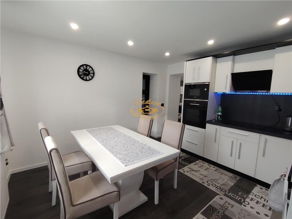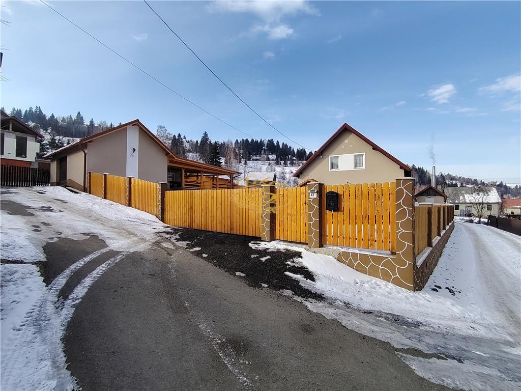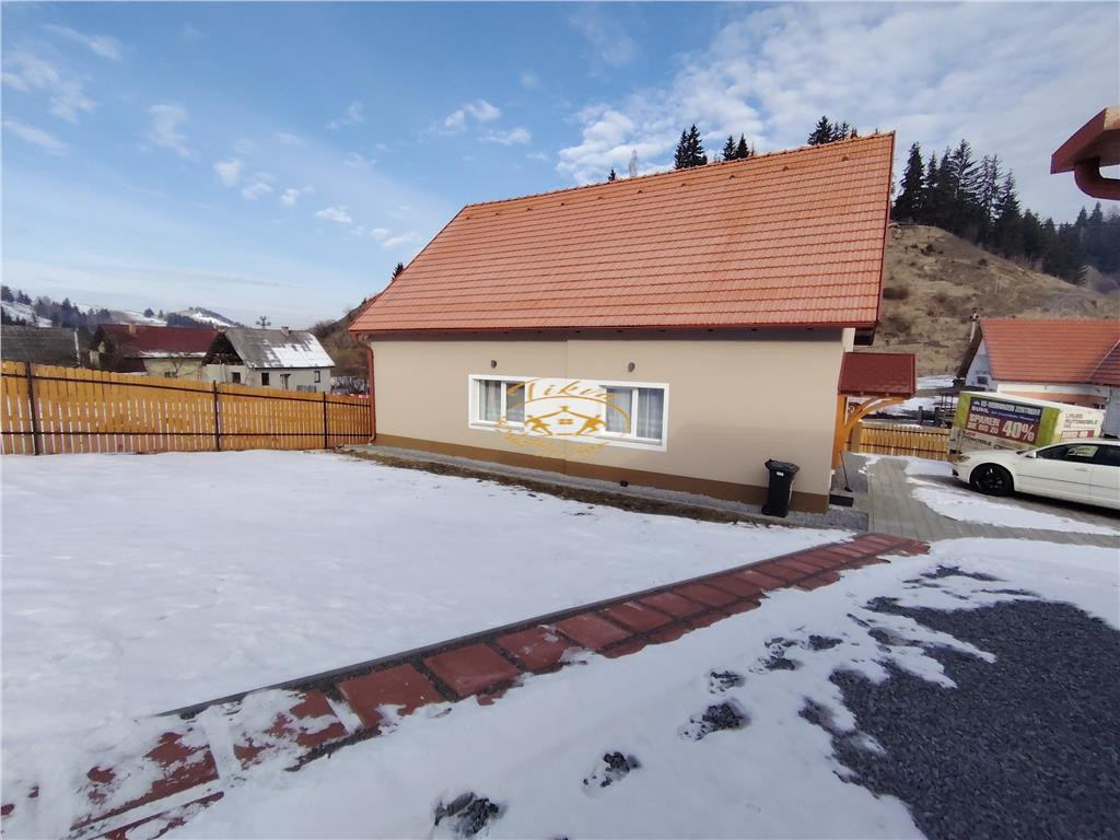 Va propunem spre vanzare casa de locuit renovata si partial mobilata in Jolotca, jud. Harghita (str. Er#337;ss Zsolt nr. 43). Casa are un regim de inaltime de P M, cu amprenta la sol de 103 msup2; (suprafata totala desfasurata 206 msup2;, suprafata utila cca. 140 msup2;). A fost construita in anii #39;70 din lemn, in 2024 fiind mansardat si renovat complet. Imobilul cuprinde un teren intravilan de 913 msup2;, cu doua deschideri la drum (28 metri si 43,9 metri), avand o vedere panoramica si putand fi accesat pe drum asfaltat. Compartimentarea casei: bull; la parter hol, living, dormitor, bucatarie, baie, spalatorie, spatiu centrala termica bull; la mansarda hol, 2 camere, bucatarie, camara, baie. Dotari si finisaje: bull; structura si pereti din lemn bull; izolat termic la exterior (cu polistirol de 20 cm) bull; acoperis sarpanta din lemn, acoperit cu tigla ceramica bull; usa de intrare din PVC cu termopan bull; usile interioare din lemn bull; tamplarie PVC cu termopan bull; parchet laminat in camere, bucatarii si camara, gresie in bai si holuri bull; pereti lavabili in camere, holuri si bucatarii, faianta si pereti lavabili in bai bull; sistem de supraveghere video. Casa este mobilata si utilata cu electrocasnice in mare parte (exceptand bucataria de la mansarda si una dintre dormitoare). Icirc;ncalzierea imobilului este asigurata prin centrala termica proprie cu cazan pe peleti si radiatoare. Imobilul dispune de utilitati: curentul electric este asigurata de la reteaua publica (imobilul dispune de curent trifazic), apa dintr-o fantana proprie cu adancime de 120 metri si un rezervor din inox de 1000 litri, canalizarea prin fosa septica. Icirc;n curte (pavata in mare parte) se afla un garaj de 70 msup2; - fiind inclus in acesta o bucatarie mobilata si utilata, o magazie si o afumatoare -, o terasa acoperita de 52 msup2;, precum si un sopron pentru lemne de 18 msup2;. Pret: 155.000 EUR - negociabil.