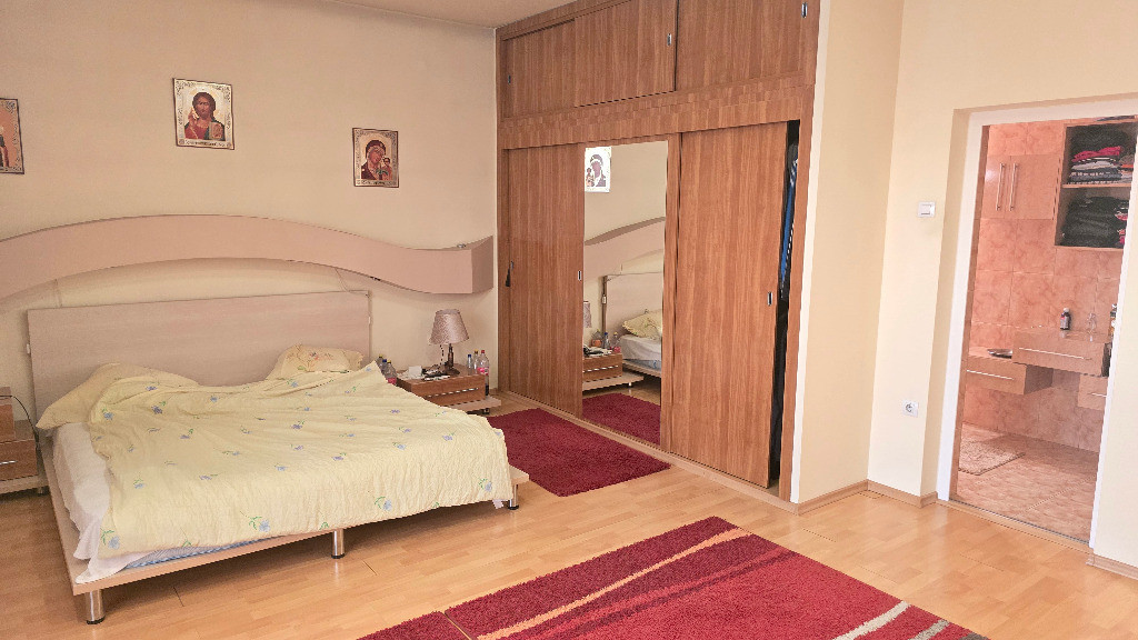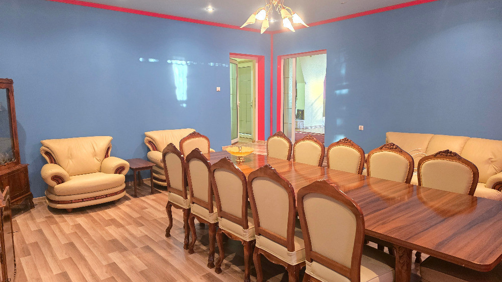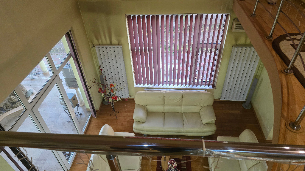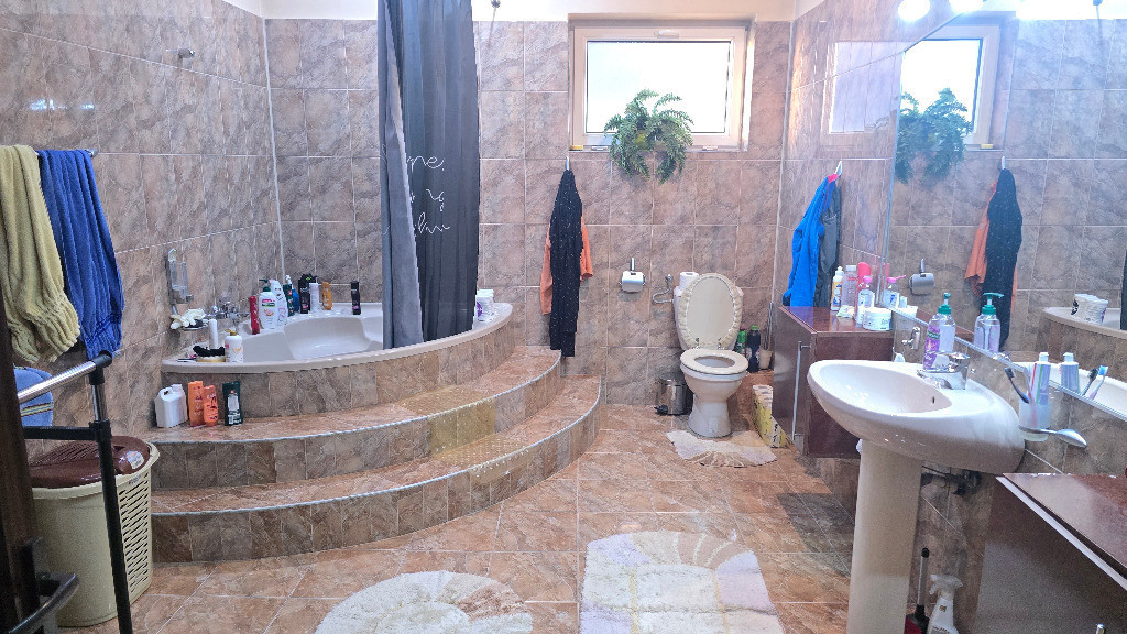 Vand casa de locuit sau pentru pensiune in Deva, zona 22 Decembrie, S+P+1+M, contructie din BCA din anul 2005, izolata exterior partial, amprenta la sol de 250 mp, suprafata construita aproximativ 750 mp, suprafata de teren 3125 mp, acces auto in curte, deschidere la strada de aproximativ 25 metri liniari. Utilitati; apa, curent trifazic, gaz, fosa septica, incalzire cu 2 centrale termice (pe gaz si pe lemne), instalatie de aer conditionat, gresie, faianta, parchet, amenajata modern, curte imprejmuita. Componenta: La subsol dispune de beci pe jumatate din suprafata casei. Parter: living, camera de zi, hol, bucatarie, baie si terasa. Etaj: 4 dormitoare (2 cu baie proprie), 3 bai, hol si 2 terase. Mansarda necompartimentata. Pret: 500 000 euro neg. Tel: 0724 293226. Mai multe poze si detalii pe www.apartamentedeva.ro sau la Agentia imobiliara Ovidiu Deva.