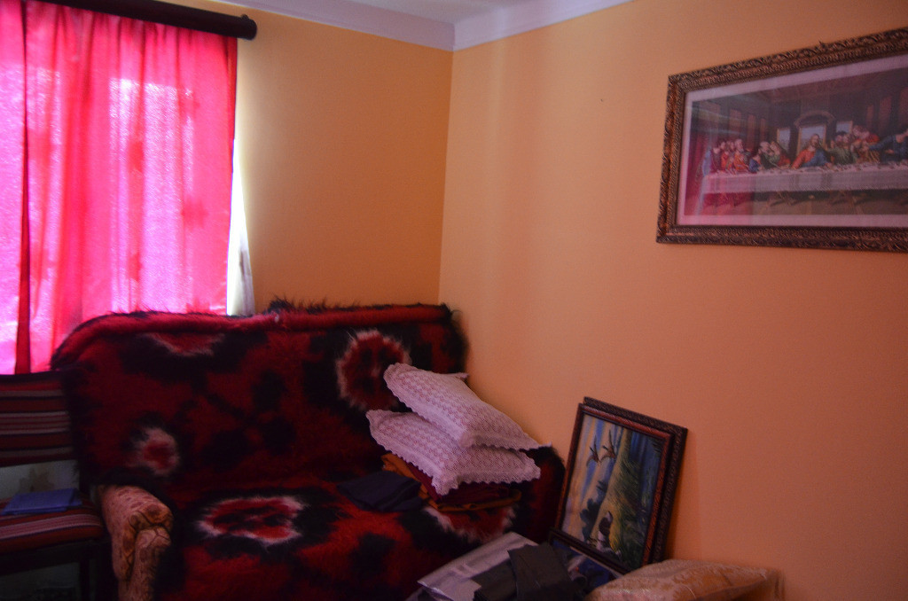 Casa de locuit situata in Comarnic,teren plat de 430 mp cu deschidere stradala asfalt ,iluminat public,acces pentru masina in curte.Casa este din beton si pereti caramida plus o anexa unde se regasesc o bucatarie de vara si camera cu un spatiu de depozitare .Are la demisol un beci.Casa are hol de acces ,sufragerie mare ,patru camere ,baie,bucatarie.Are un amplasament foarte insorit,gradina de flori ,bolta in fata casei.Incalzirea se face pe gaz ,camerele fiind prevazute cu sobe de teracota pe gaz.Are toate utilitatile bransate si functionale.
