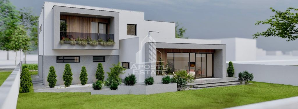 APOSTU ESTATE va propune spre vanzare o casa de lux, cu 7 camere, 4 bai, in Dumbravita. Aceasta proprietate ofera un design modern si finisaje premium, avand o suprafata utila de 340 m² si 705mp de teren. Livingul spatios, bucataria complet mobilata si utilata, si dormitoarele fiecare cu bai private si dressing garanteaza confortul suprem. Curtea din spate poate include la cerere o piscina si o terasa ideala pentru divertisment. Aceasta casa exclusivista se remarca printr-o constructie impecabila, cu materiale de cea mai inalta calitate si electrocasnicele de ultima generatie. Fiecare detaliu a fost ales cu atentie pentru a asigura nu doar un aspect estetic deosebit, ci si un nivel ridicat de durabilitate si performanta. Eficienta energetica si tehnologiile moderne integrate in sistemele de incalzire si climatizare garanteaza confortul maxim pe tot parcursul anului. Rezumat compartimentare casa: >Parter: -hol de access - camera dressing - camera tehnica - birou - living - zona de dining cu iesire in curtea din spate - bucatarie deschisa > Etaj: - 2 dormitoare cu camera de dressing si baie proprie - 1 dormitor matrimonial cu camera deressing, baie proprie si terasa Vecinatati: - La gradina Ritei - Kinderville Dumbravita - Casa Bunicii - WorldClass Oferim consultanta si solutii financiare prin colaboratorii nostri. Va invitam cu drag la o vizionare! ID intern: CP2538643