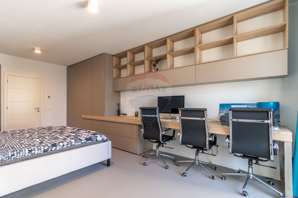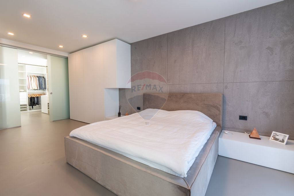 Vilă modernă spectaculoasă în White House Residence – design exclusivist și dotări premium. Această proprietate deosebită este amplasată într-unul dintre cele mai exclusiviste cartiere rezidențiale – White House Residence, oferind viitorilor proprietari un stil de viață rafinat, siguranță și confort de înalt nivel. Construită în 2016, vila impresionează prin arhitectura modernă, spațiile luminoase și finisajele de top. Suprafața utilă de 256 mp este excelent pusă în valoare printr-o compartimentare inteligentă, completată de un teren generos de 600 mp, amenajat cu gazon, plante ornamentale și sistem automatizat de irigație. Compartimentare: Parterul găzduiește un living spațios, bucătărie modernă complet utilată, hol primitor, baie, spălătorie, garaj și o terasă exterioară ideală pentru relaxare, amenajata cu jacuzzi. Etajul este dedicat zonei de noapte, cu un dormitor matrimonial ce dispune de dressing foarte incapator, baie proprie cu dus si cada și acces la o terasă panoramică amenajată cu zonă de lounge, alături de un dormitor pentru oaspeți cu baie proprie și balcon. Dotări și finisaje premium: Încălzire în pardoseală în întreaga casă Pardoseală din rășină epoxidică Mobilier custom Cadoro, avand un design ultra-modern Jaluzele electrice, balustrade din sticlă Ușă de intrare securizată cu amprentă digitală Sistem de alarmă și supraveghere video Șemineu pe lemne, iluminat LED interior/exterior Jacuzzi încălzit, video proiector și sistem audio pe terasă Parcare și terase placate cu glesogranit Magazie exterioară pentru depozitare Utilități: Apă, canalizare, gaz și curent trifazic. Avantaje: Poziționare excelentă în cadrul complexului Priveliște panoramică spectaculoasă, dupa cum se poate vedea in fotografii Curte amenajată cu plante valoroase și spațiu verde elegant Stil arhitectural modern, cu un interior conceput până la cel mai mic detaliu Această vilă este alegerea perfectă pentru cei care doresc o locuință exclusivistă, într-o comunitate selectă, cu facilități premium și un cadru de viață de excepție.