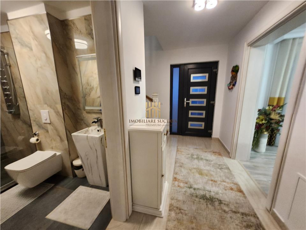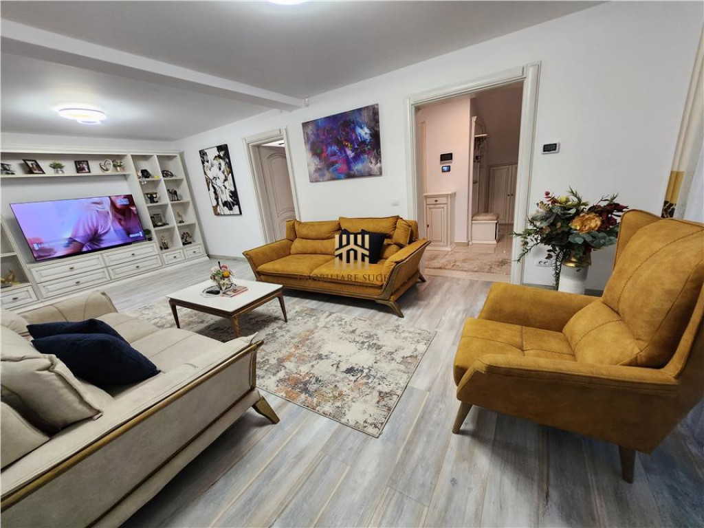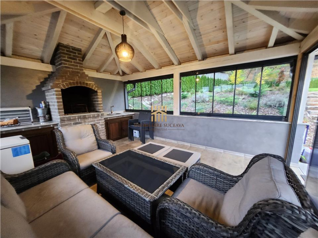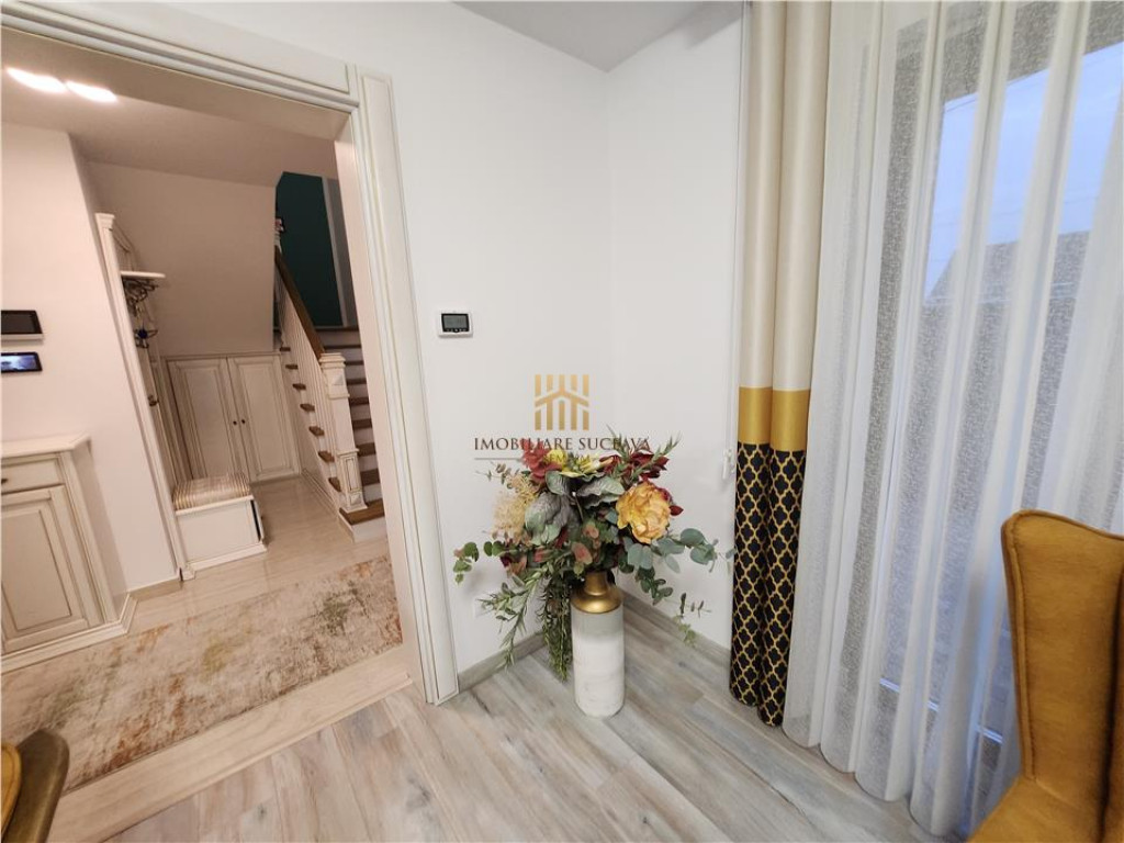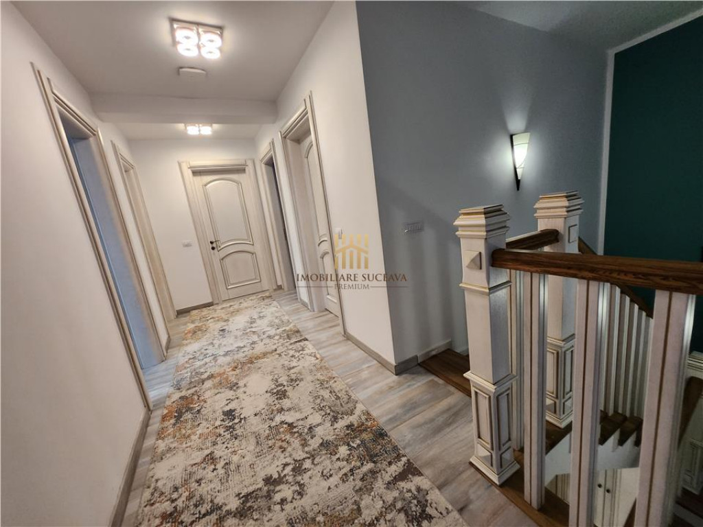 Casa de Lux in Suceava! Este locul unde vrei sa te trezesti dimineata sa-ti bei cafeaua! Aici, in foisor, poti sa-ti petreci serile cu prietenii! Gazonul irigat automat, curtea si elementele exotice te fac sa simti bucuria! Zona excelenta! Casa Luxoasa! Noua! Moderna! Mobilier de lux, complet mobilata si utilata! Trei bai! Living, 4 dormitoare, dressing si bucatarie! Incalzire in pardoseala! Teren 1150 mp! Curte pavata! Toate utilitatile! Pret: 750000 euro! Comision quot;0quot; catre agentie! Detalii: 0727817187