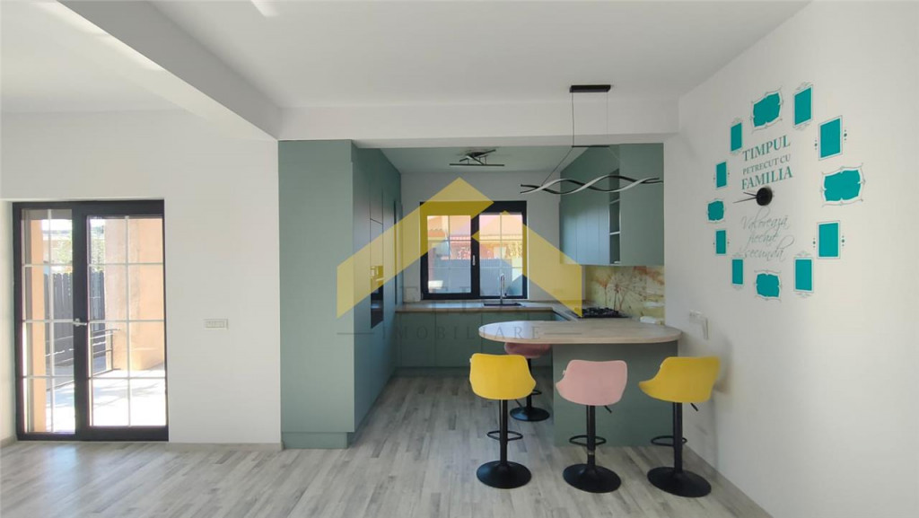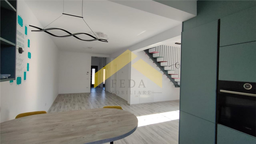FEDA Imobiliare va ofera spre vanzare o casa tip dublex in localitatea Sanandrei, judetul Timis. Casa are un regim de inaltime P M si a fost construita in anul 2022, cu o suprafata de 120 mp utili. Terenul are o suprafata de 320 mp. Casa este compusa astfel: La parter:-living bucatarie open space. Bucataria este mobilata si dotata cu electrocasnice Bosch (cuptor electric, plita gaz, hota, frigider, masina spalat vase)-Birou mobilat-Camera de oaspeti-Baie de servici dotata si utilata-Hol-DressingLa mansarda: -Doua dormitoare-Baie dotata si utilata-Camera depozitareCurte: -Terasa deschisa si acoperita, dotata cu bucatarie si gratar pe gaz-O camera tehnica si pentru depozitare-Gazon si zona verde cu sistem de irigare automat-Gard metalicFront stradal deschis cu 3 locuri de parcare auto.Dotari:-Pompa de caldura Daikin-Incalzire in pardoseala in toata casa-Boiler de 200L disponibil, dar fara PIF (proprietarii au optat pentru ACM instant prin pompa de caldura dotata cu boiler integrat)-Ventiloconvectoare la mansarda conectate la pompa caldura pt Rece Cald instant-Acoperis izolat cu spuma 15cm tigla-Placa de beton intre parter si mansarda-Panouri solare 6 Kw prosumator-Caramida Porotherm 30 Izolatie din polistiren expandat 15cm-Usi si geamuri din termopan tripan cu site si rulouri electrice-Geamuri velux la mansarda cu deschidere si site-Scari metalice in interior -Sistem dedurizare apa-Apa din foraj propriu-Curent electric-Gaz-Prize TV internet in fiecare camera-CanalizarePentru mai multe detalii sau programarea unei vizionari, nu ezitati sa ma contactati telefonic!!Felix Petru-0723 535 000