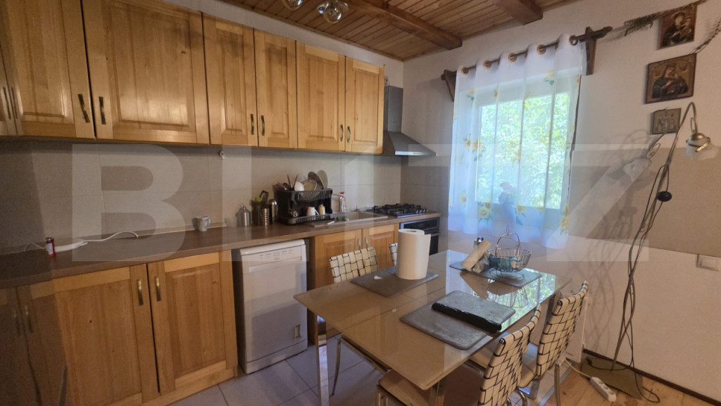 Blitz va propune spre achizitie o casa pe structura de lemn, gata de locuit, situata pe un teren de 1603 mp situata la Cernatesti. Pe proprietate regasim 80 pomi fructiferi: meri, peri, pruni, visini etc, dar si vita de vie altoita. Casa are fundatie de beton este pe structura de lemn adus din Elvetia, peretii sunt grosi de 30 cm, izolati pe interior. Geamurile sunt tripan. Mansarda are posibilitate de compartimentare. Mobilierul este comandat din Elvetia din lemn masiv si se vinde mobilata utilata. Sursa de incalzire este semineu pe lemne si calorifere electrice. In curte regasim un foisor cu loc de gratar amenajat, solar. Propietatea este imprejmuita de imprejmuita de gard de beton, iar curtea este amenajata cu pavele. Va asteptam cu drag la vizionare! Cod ofertă / ID BLITZ: P150312 Id intern: P150312