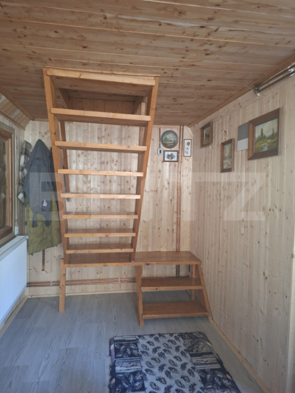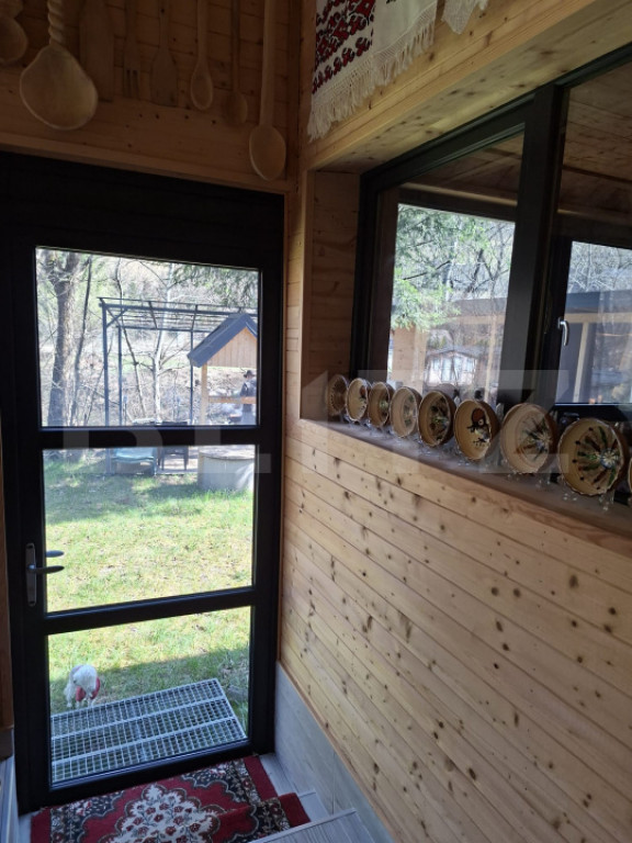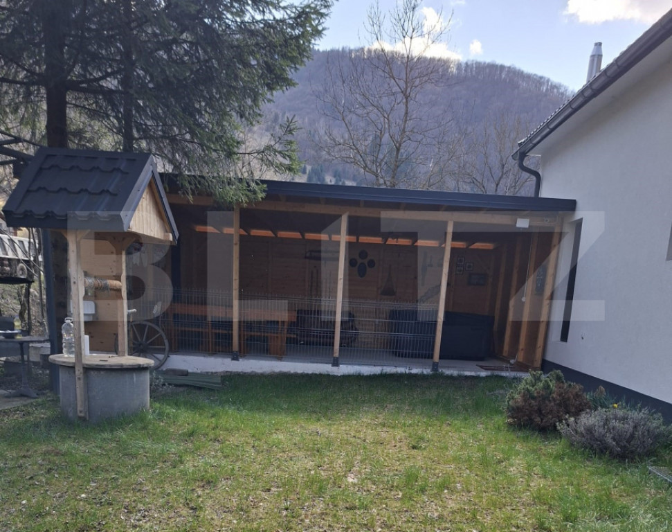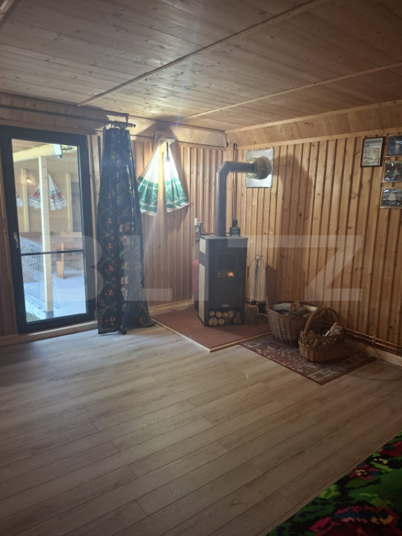 BLITZ oferă spre vânzare o cabană situată în Localitatea Dealu Mare, Comuna Mărișel, la o distanță de circa 40 km de Cluj-Napoca, 5 km de coada Lacului Tarnița și 11 km de pârtia de ski, pe malul râului Someșul Cald. Proprietatea dispune de o suprafață utilă de 100 mp, amplasată pe un teren de 768 mp, regim de înălțime P+M. Compartimentare: Parter: terasă spațioasă închisă cu geamuri termopan, living generos, bucătărie mobilată și utilată, baie; Mansardă: 3 camere. Construcția este realizată din lemn și cărămidă, pe fundație din piatră, șarpantă din lemn, cu izolație termică. Casa se vinde mobilată și utilată, cu instalații electrice și sanitare, încălzire centralizată cu termoșemineu pe lemne și calorifere, apă curentă din făntănă cu hidrofor, canalizare cu fosă septică, acces TV și internet prin WiFi, aspirator, cafetieră, cuptor cu microunde, frigider, sandwichmaker, toaster. Exterior: terasă de 40 mp prevazută cu loc de luat masa, un jacuzzi electric cu hidromasaj capacitate de 6 persoane, foișor pentru pregătit ceaun și grătar, locuri de parcare, împrejmuire exterioară. Poate fi considerată o oportunitate de achiziție pentru investiție într-o zonă căutată în orice anotimp pentru închiriere, fiind amplasată într-o zonă cu înalt potențial turistic. Vă așteptăm cu drag să ne contactați pentru mai multe detalii și să organizăm o vizionare. Cod ofertă / ID BLITZ: P169590 Id intern: P169590