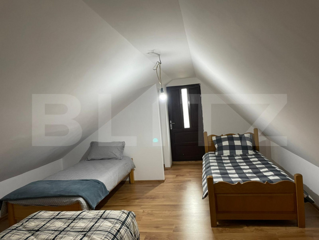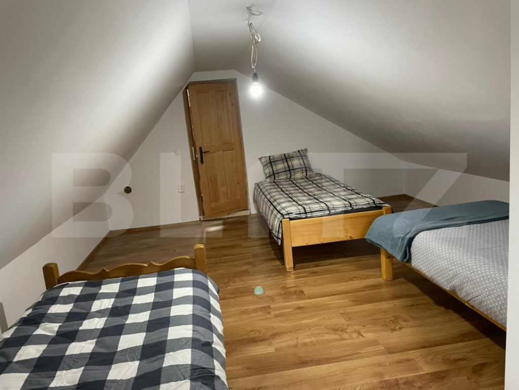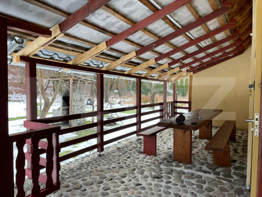 Blitz vă propune spre vânzare o cabană / casă de vacanță situată în Câmpu Cetății, construită în anul 2000, pe fundație din beton, cu pereți din lemn și acoperiș din tablă. Imobilul are o suprafață construită desfășurată de 128 mp și este compartimentat astfel: Parter: o cameră, bucătărie, cămară, hol, baie și 2 terase acoperite; Mansardă: 2 camere. Proprietatea este amplasată pe un teren generos de 2460 mp, oferind posibilitatea construirii mai multor cabane sau amenajării unui spațiu de relaxare extins. În curte se regăsește o anexă pentru depozitarea lemnelor și zonă de grătar, ideală pentru petrecerea timpului liber în aer liber. Zona este deosebit de liniștită, situată foarte aproape de râul Niraj și de pădure, îmbinând perfect liniștea naturii cu confortul unei case de vacanță. Pentru mai multe detalii sau pentru programarea unei vizionări, vă așteptăm cu drag! Cod ofertă / ID BLITZ: P170604 Id intern: P170604