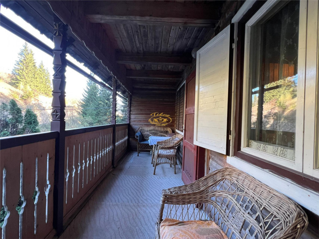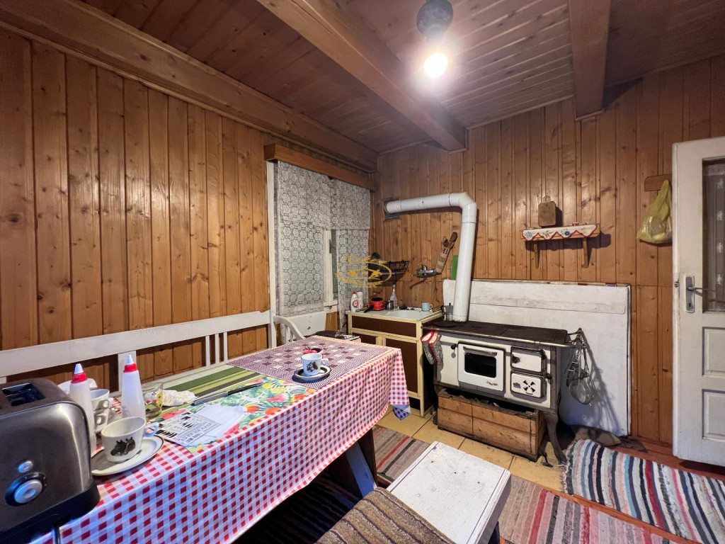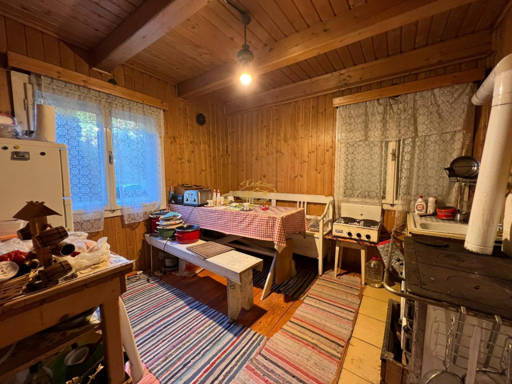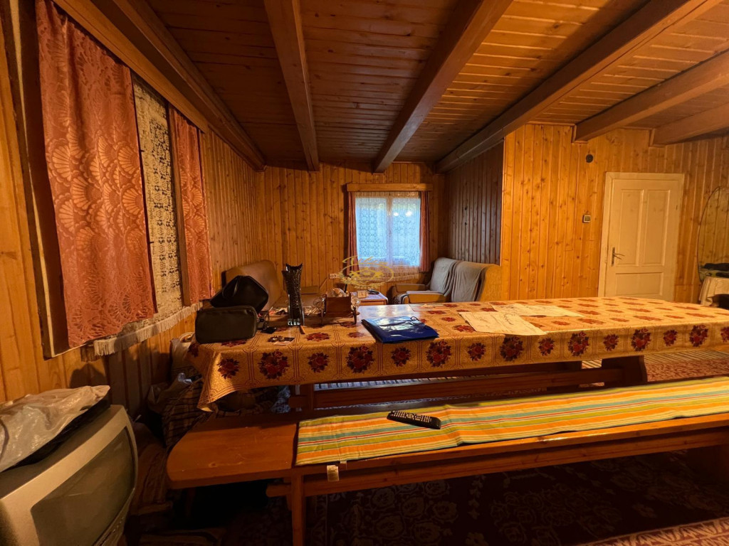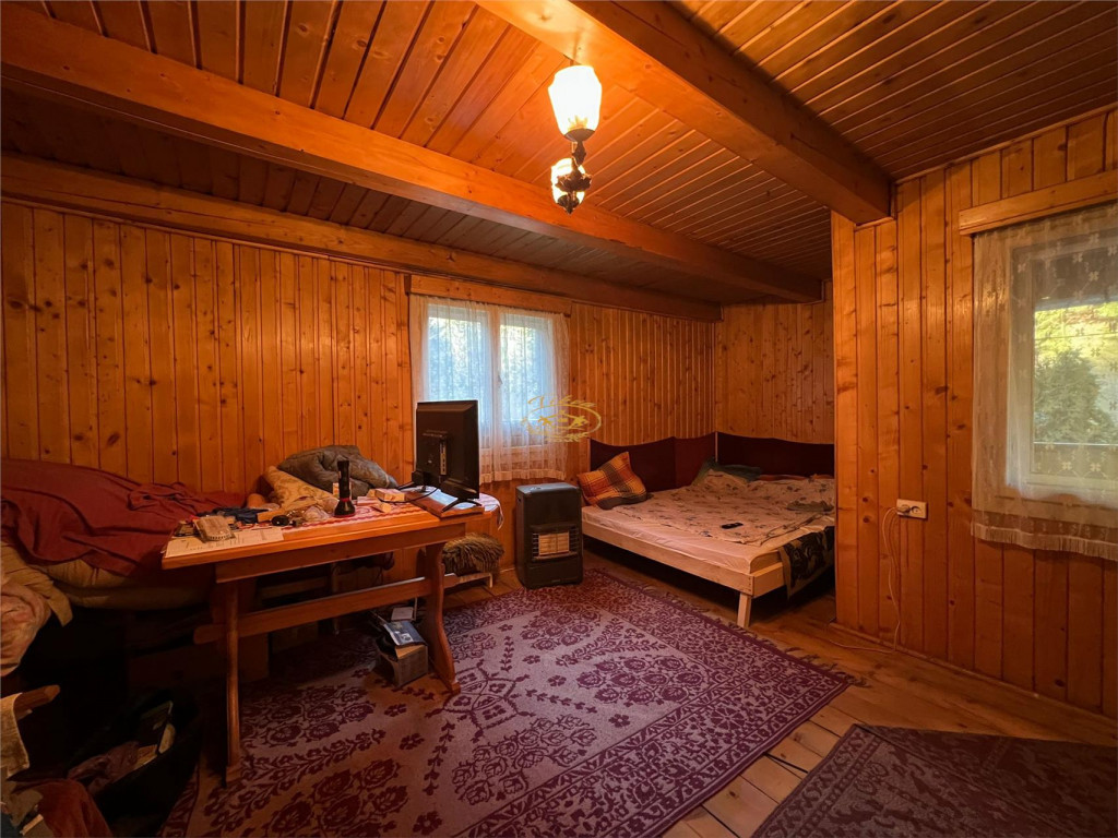Va propunem spre vanzare casa de vacanta mobilata in Ciobotani, Com. Stanceni, jud. Mures, la cca. 8 km de Toplita si cca. 60 km de Reghin. Proprietatea este situata in valea paraului Mermezeu, intr-o zona delimitata de paduri, dar usor accesibila cu masina, la aproximativ 250 de metri de DE578. Casa de vacanta a fost construita in 1994 din lemn, cu un regim de inaltime de P 1E, avand suprafata totala construita de 126 msup2; (suprafata utila de cca. 105,85 msup2;). Compartimentare: la parter hol, living, bucatarie si baie; la etaj antreu, 2 dormitoare, balcon acoperit (8,25 msup2;). Terenul intravilan aferent are suprafata de 519 msup2;, cu deschiderea la drum de 37,6 metri. Dotari si finisaje: bull; Fundatie de beton si piatra bull; Structura si pereti din lemn, fara izolatie termica bull; Acoperis: sarpanta din lemn, invelit cu placi azbociment bull; Ferestere si usi din lemn, fara geamuri termopan bull; Podele: dusumea in living, bucatarie, dormitoare si hol, gresie in baie bull; Pereti: lambriu de lemn in living, bucatarie, dormitoare si hol, vopsea in baie. Proprietatea dispune partial de utilitati: este racordata la reteaua electrica, apa este asigurata printr-o retea proprie alimentata de la un izvor, canalizarea prin fosa septica. Icirc;ncalzirea casei este asigurata cu sobe pe combustibil solid (o soba de teracota si patru sobe de metal), apa calda prin boiler electric. Casa dispune de o pivnita, iar in curte se gasesc un sopron pentru lemne si un cuptor cu acoperis. Pret: 59.900 EUR - negociabil. (Pentru mai multe detalii contactati agentul nostru imobiliar: Pap Denes, 40-758-311718.)