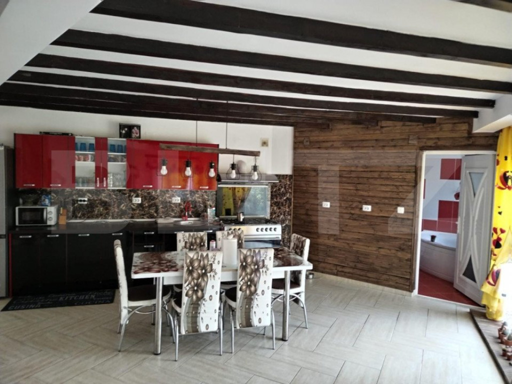 Blitz Imobiliare Targoviște va oferă o casa familială P+1 frumos amenajată compartimentată după cum urmează: Parter: 2 dormitoare, hol, casa scarii, living openspace, camara, baie finisate Premium. Etaj: compartimentat dar nefinisat alcatuit din 2 dormitoare, 2 dresinguri, baie la gri. Suprafata totala construita de 220 mp construiti, 180 mp utili si teren de 975 mp pe care se regăsește in afara de casă o gradină si un helesteu, situată în zona centrală a satului Colanu. Casa este dotata cu tamplarie tip Rehau, izolatie polistiren EPS 100 de 10 cm, BCA, placa de beton intre parter si etaj, acoperiș cu tabla Tip Lindab , izolatie pe tavane cu vata minerala, și tavane false de rigipspe structura de perfile de aluminiu, accesul la etaj se face prin intermediul unei scări interioare casei, centrala termica tip Ariston, finisaje de cea mai buna calitate. Casa se predă bransată la toate utilitațile din zona, respectiv curent electric, apa curentă si gaz plus fosă septică. Cod ofertă / ID BLITZ: P11984 Id intern: P11984
