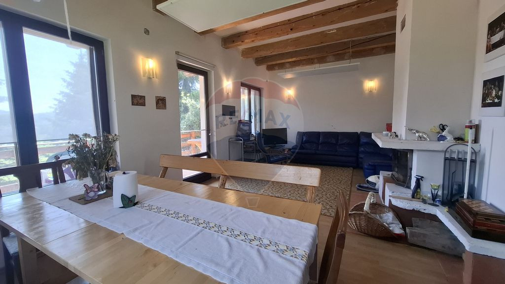 -Parter: living generos cu șemineu, bucătărie deschisă, baie cu duș si o terasa de 15mp, cu vedere spectaculoasa