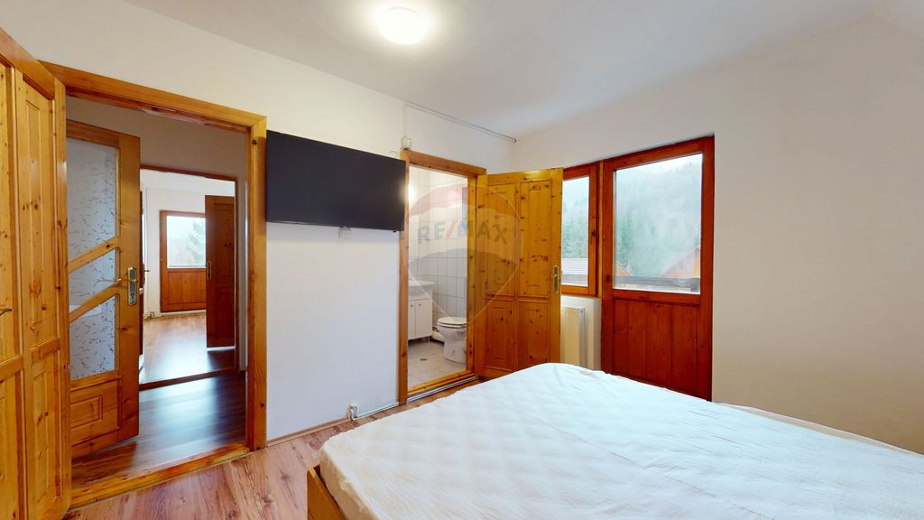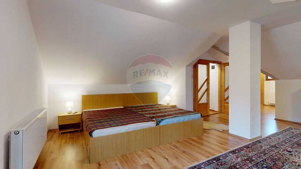 Casă de vacanță în Plaiul Foii | Zărnești | P+E+M | Cadru natural În inima naturii, acolo unde liniștea este întreruptă doar de sunetul pădurii și al râului de munte, îți prezint o casă de vacanță situată în Plaiul Foii, una dintre cele mai frumoase și autentice zone montane din România. Proprietatea este amplasată pe un teren generos de 986 mp, oferind intimitate deplină, singur în curte, fără vecini care să îți invadeze spațiul sau priveliștea. Cadrul este absolut spectaculos: aer curat, peisaj rustic autentic și o priveliște superbă către munți, care îți oferă senzația de libertate și reconectare cu natura în fiecare zi. Este locul ideal pentru: casă de vacanță pentru familie, retreat de weekend departe de agitația orașului sau investiție turistică într-o zonă cu cerere constantă. Parterul este gândit funcțional și elegant, oferind: acces din curte pe două părți, living generos cu zona de dinning, bucătărie, baie, debara,două holuri și CT pentru centrală. Etajul este organizat pentru confort și intimitate: 3 dormitoare fiecare cu baie proprie, două holuri și o cmareă de zi. Mansarda oferă un open space generos, complet locuibil, care poate deveni: lounge privat, birou executive, sală hobby, zonă de relaxare sau spațiu pentru oaspeți, baie, două holuri și spatiu depozitare. Curtea oferă intimitate, funcționalitate și un cadru ideal pentru seri liniștite sau întâlniri cu prietenii. Dispune de locuri de parcare amenajate, spații verzi bine întreținute și o anexă. Detalii financiare: - Investiție : 319.000 Euro - Onorariu notarial si taxe OCPI: în sarcina cumpărătorului - Impozit pe venitul generat de vânzare: în sarcina vânzătorului - Moneda tranzacției: EURO/RON la curs BNR Detalii tehnice: - Localizare: Plaiul Foii, Zărnești, jud. Brașov - Singur in curte, 986 mp teren - Nr. camere: 7 - Suprafață utila: 192.2 mp - Dispunere: Parter + Etaj + Mansardă - Număr bai : 5 - Utilități: apă, curent, fosă septică, centrală proprie pe lemne - Mobilată și utilată - se predă conform turului virtual cu excepția obiectelor personale Detalii juridice: Agenția imobiliară a verificat următoarele documente: - Extrasele de carte funciara - Documentele de dobândire a proprietății - Releveu - Certificat energetic - Documente personale proprietari Având in vedere verificările juridice efectuate, suntem bucuroși sa va informam ca imobilul ce urmează a fi cumpărat este in regula din punct de vedere juridic si este liber de sarcini. Potrivit analizei noastre, nu au fost identificate probleme juridice care ar putea afecta valabilitatea tranzacției. Pentru a înțelege mai bine proprietatea, te invit să parcurgi turul virtual interactiv disponibil in aceasta pagina, din confortul casei tale și să ne suni pentru a programa o vizionare dacă vei considera că ți se potrivește.