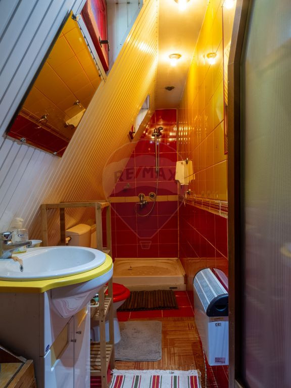 Vă propun spre vânzare în sistem de reprezentare exclusiva cu COMISION 0% pentru cumpărător, o casă de vacanta in Slanic Prahova. Această casă oferă o oază de relaxare într-un cadru deluros pitoresc. Construită în anul 2000 și ulterior îmbunătățită, casa, are o suprafață utilă de 130 mp și se află pe un teren de 967 mp, amenajat cu pomi fructiferi, flori și un foișor. Designul interior al casei este fermecător, cu o inspirație montană evidentă. La etaj, scara interioară din lemn și lambriul de lemn adaugă un plus de căldură și autenticitate. Spațiile interioare sunt generoase și bine amenajate, oferind confort și intimitate. La parter, casa dispune de o terasa, un living spațios, o bucătărie deschisă complet utilată și o baie. La etaj sunt trei dormitoare și o baie de serviciu. Unul dintre dormitoare beneficiază de un balcon cu vedere către curtea plină de verdeață, oferind un loc ideal pentru relaxare. Podul casei este amenajat ca un loc de relaxare și un birou, oferind un spațiu suplimentar versatil și practic. Compartimentarea casei este ideală pentru confort și funcționalitate. Imobilul este solid construit, având o fundație și structură din beton, zidărie și BCA la parter. Etajul este construit pe structura din lemn, are izolatie cu vată minerală , acoperisul este din tablă zincată , cu izolatie . Casa este racordată la rețelele de apă și electricitate, iar încălzirea se poate face fie prin centrala cu lemne, fie cu gaz, imobilul fiind dotat cu o butelie GPL. În plus, livingul este dotat cu un șemineu, care îndeplinește atât un rol decorativ, cât și unul funcțional de încălzire. Curtea spațioasă este un adevărat paradis pentru iubitorii de natură, fiind înconjurată de spații verzi și arbori fructiferi. Atmosfera liniștită contribuie la un mediu relaxant și plăcut, ideal pentru locuit sau pentru a fi utilizată ca locuință de vacanță. Foișorul este ideal pentru momente de relaxare sau mese în aer liber, iar garajul separat, cu beci dedesubt, oferă spațiu suplimentar pentru depozitare și protecție pentru autovehicul. Pentru mai multe informații, vă stau la dispoziție!