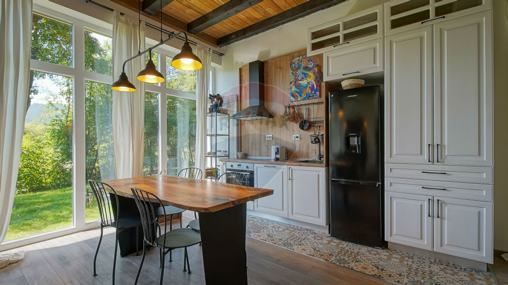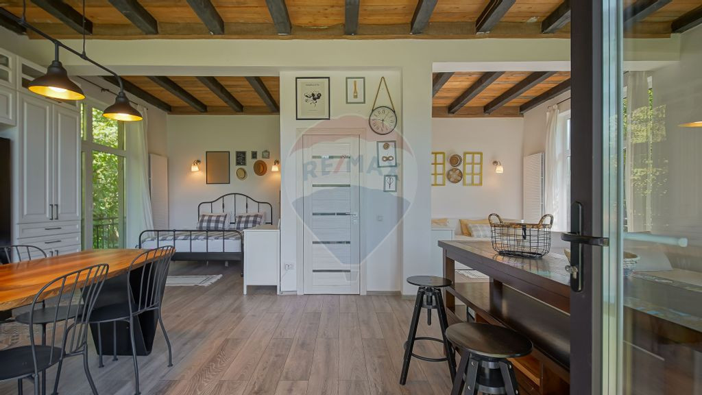 Sunt Claudiu Dorobanțu, consultant imobiliar în cadrul RE/MAX Central Brașov, și vă prezint spre vânzare o proprietate rară, ideală atât ca refugiu montan, cât și ca investiție turistică. Situată în Cheile Râșnoavei – strada Cheișoara, această casă de vacanță finalizată în 2024 oferă combinația perfectă între liniște, natură pură și confort modern. Accesul se face direct de pe drum asfaltat, iar decorul natural este absolut spectaculos. Caracteristici cheie: Suprafață construită: 67 mp Teren: 504 mp – pârâu natural în curte, un detaliu extrem de rar Construcție nouă (2024) – realizată cu materiale de calitate Structură solidă: cărămidă, acoperiș din țiglă, izolație termică Ferestre vitrate mari – lumină naturală din plin și vedere către Vârful Coștila & Munții Bucegi Interior modern, luminos și primitor: Dormitor matrimonial cu vedere către pârâu (open space). Dormitor secundar cu canapea extensibilă – ideal pentru copii sau oaspeți (open space). Living spațios cu bucătărie open-space, perfect pentru relaxare. Înălțime camere: 3,15 m – senzație reală de spațiu și aerisire. Complet mobilată și utilată – gata pentru locuit sau închiriere imediată. Utilități și facilități: - Centrală termică pe butelii de propan - Apă curentă (factură la comun) - Energie electrică (factură la comun) - Fosă septică Acces rapid către DN1 prin Pârâul Rece, la 15 km până la Predeal. Locație premium - relaxare & randament: Valea Râșnoavei este una dintre cele mai apreciate zone montane din județul Brașov, cunoscută pentru: peisaje spectaculoase, liniște și aer curat, proximitate față de stațiuni, trasee montane și obiective turistice. Ideală pentru vacanțe de familie, închiriere în regim turistic sau Airbnb. Preț atractiv! O proprietate care oferă mai mult decât o casă: oferă un stil de viață. Contactează-mă acum pentru detalii suplimentare și programarea unei vizionări! Această casă nu este doar o investiție — este locul unde începe relaxarea.
