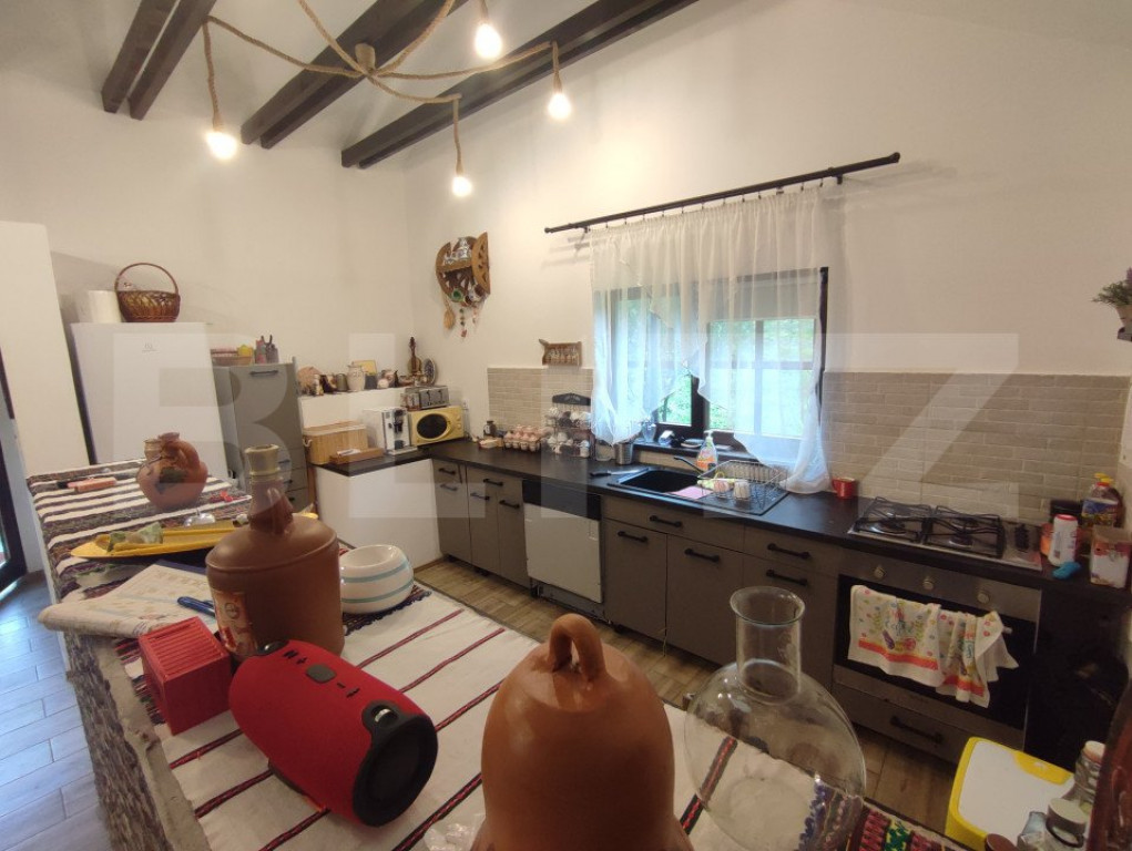 Blitz va propune această casă de vacanță situată în inima pitorească a Stulpicaniului. Imobilul este o adevărată oază de relaxare, oferind toate facilitățile moderne pentru un trai confortabil și liniștit. Cu un teren intravilan generos de 2000 mp, această proprietate reprezintă un echilibru perfect între natura serenă și confortul modern. Casa Principală Construită din zidărie lemn, această casă impresionează prin arhitectura sa tradițională combinată cu elemente moderne, fiind complet modernizată în anul 2022. Suprafața Construită Desfășurată: 288 mp Configurație: Parter + Mansardă Camere: 7 camere spațioase, ideale pentru familii numeroase sau grupuri de prieteni Băi: 5 băi moderne, dotate cu toate facilitățile necesare Camera Centralei Aceasta se află într-o anexă separată și are o suprafață de 20 mp, asigurând o încălzire eficientă prin centrala cu gazeificare cu lemne și calorifere. Anexe Apartament: Configurație: 2 dormitoare, hol și baie, ideal pentru oaspeți sau pentru a fi folosit ca spațiu de locuit adițional Salon și Terasă: Suprafață salon: 6x11 m Dotări: Bucătărie complet echipată, baie, capacitate de 20 de persoane Terasa acoperită: 32 mp, perfectă pentru evenimente în aer liber, dotată cu grătar și loc de luat masa Bucătărie de vară complet modernizată, ideală pentru prepararea meselor în timpul verii Facilități Apa curentă de la comuna și hidrofor Curent Electric Canalizare: Racordată la rețeaua comunei Încălzire prin centrală cu gazeificare cu lemne și calorifere, asigurând o temperatură plăcută pe tot parcursul anului Acte la zi, oferind o tranzacție fără probleme Mobilare și Utilare Casa se vinde la cheie, complet mobilată și utilată cu toate necesitățile pentru a începe să vă bucurați de noua dumneavoastră proprietate imediat. Puncte de Interes în Zonă Codrul Secular Slătioara - 10 km Zona turistică Voroneț - 19 km Zona turistică Rarău - 30 km Orașul Gura Humorului - 17 km Orașul Câmpulung Moldovenesc - 17 km Concluzie Această casă de vacanță din Stulpicani este o oportunitate unică de a achiziționa o proprietate complet echipată, într-o zonă centrală dar liniștită. Ideală pentru escapade de weekend, investitie sau pentru o locuință permanentă, această proprietate oferă confort, spațiu generos și facilități moderne, totul într-un cadru natural deosebit. Va asteptam la vizionare! Cod ofertă / ID BLITZ: P128032 Id intern: P128032