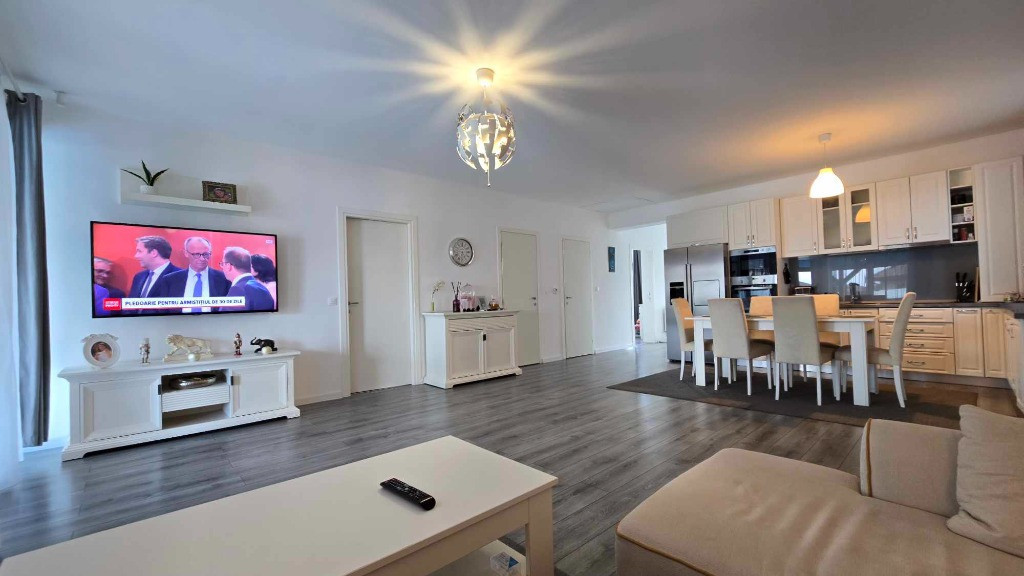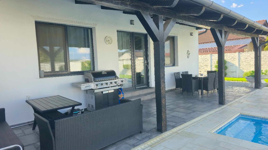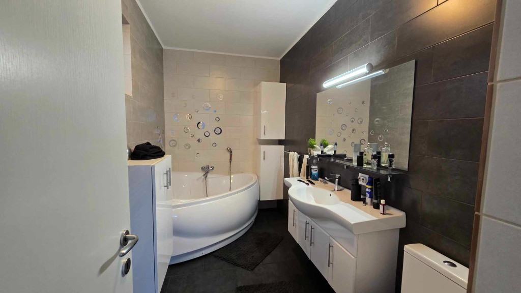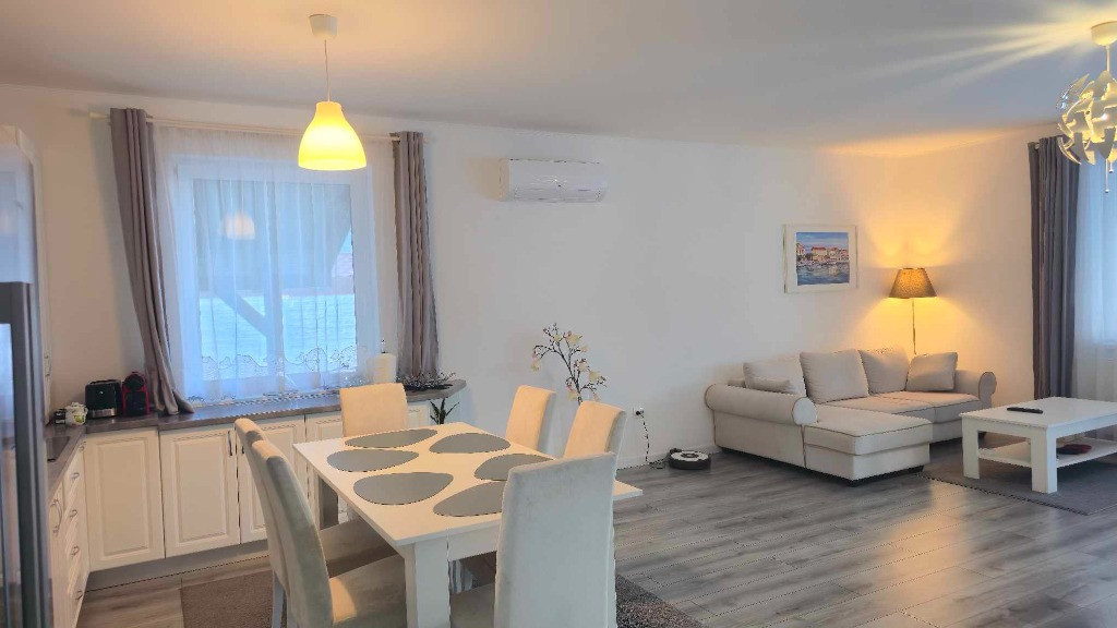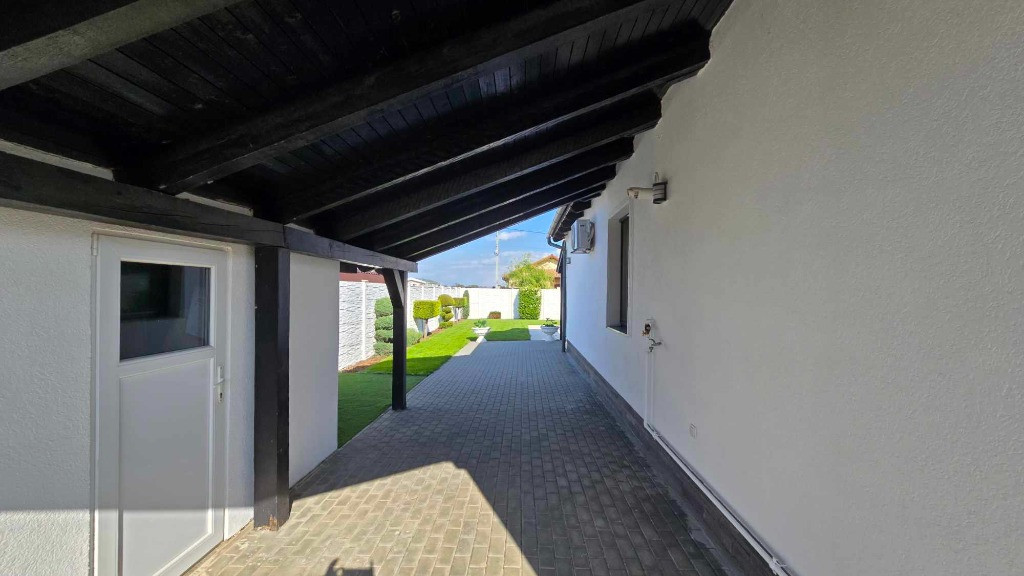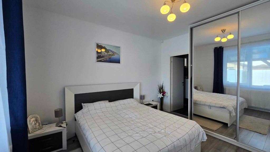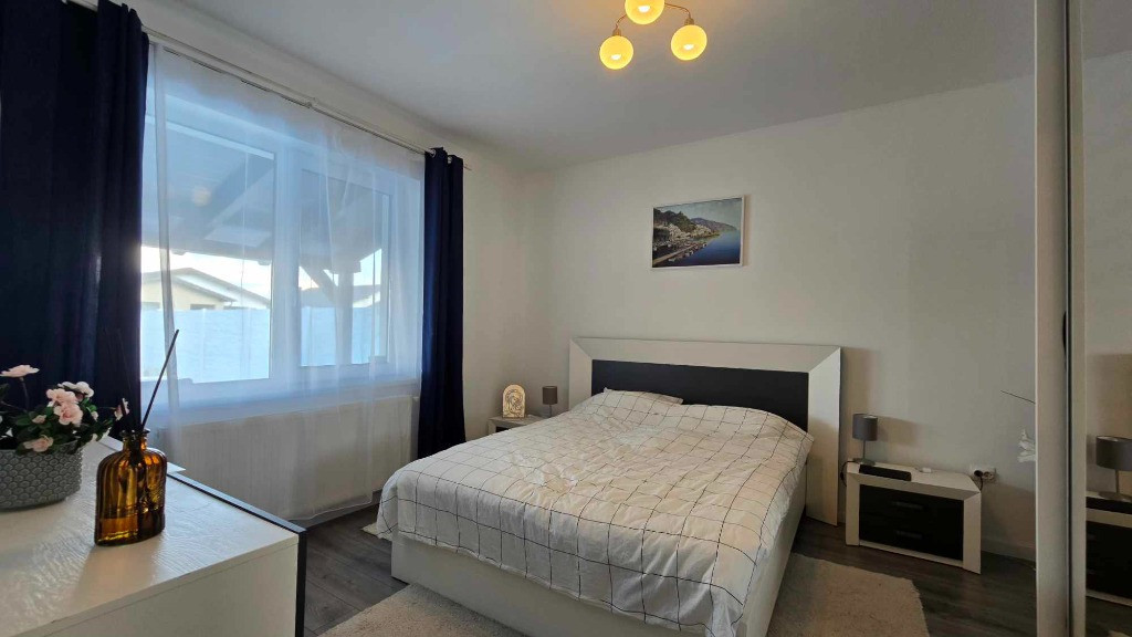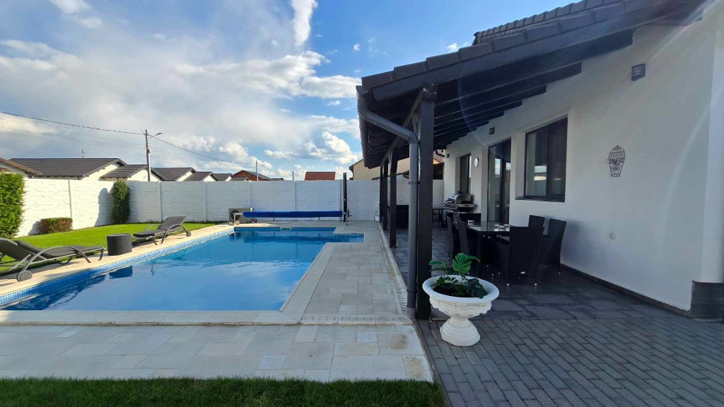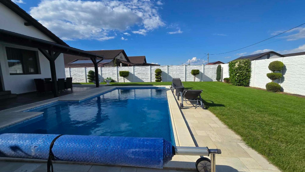 Cora Proiect Imobiliare va propune spre vanzare casa situata in Santandrei, in zona de intrare a localitatii, mai exact in spate la Mega Image, strada asfaltata , construita in regim parter, intrare auto- garaj si piscina incalzita. Disponibila la vanzare dar si schimb cu apartament nou, 3 camere, minim doua dormitoare, loc de parcare subteran sau exterior. Imobilul este finalizat in anul 2021, cu o amprenta bine definita asupra designului si dotarilor printr-o amenajare armonioasa, imaginile din fotografiile atasate fiind sugestive, toate acestea la un loc facand din aceasta casa un ambient primitor, imbietor. Suprafata terenului aferent acestui imobil este de 505 mp impreuna cu amprenta la sol, frontul stradal este generos, curte bine amenajata cu gazon, spatiu verde, plante ornamentale, sistem de irigatie, piscina 8×4 metri incalzita cu pompa de caldura, terasa de 30 mp in prelungirea casei, poarta automata cu intrare auto si garaj pentru minimum doua masini, anexa magazie. In suprafata construita de 130 mp si suprafata locuibila utila de 110 mp. Compusa din: hol de intrare, living cu loc de servit masa cu bucatarie in spatiu deschis, camara de alimente, 3 dormitoare, unul matromonial cu baie proprie, baie pe hol. Compartimentarea este foarte bine definita , doua dormitoare cu orientare stradala, adica vest, un dormitor matrimonial cu orientare rasarit, unul dintre dormitoare avand baie proprie cu intrare directa din dormitor, baie mare cu vana si fereastra, , iesire in terasa de 30 mp, acoperita cu loc de grill/profesional, loc de relaxare si luat masa. Finisajele sunt de o calitate foarte buna, cu materiale de calitate medie/ inalta, gresie, faianta, instalatii foarte bine executate, centrala pe gaz, termostat de ambient. Constructia casei a fost atent supravegheata, caramida POROTHERM de 32 cm, pereti de interior de 25 cm, izolatie cu polistiren grafitat de 10 cm, densitate 100, izolatie cu spuma poliuretanica in pod in grosime de 15 cm ceea ce asigura un grad inalt de economisire a energiei consumata . Din punct de vedere al finisajelor de asemenea incepand de la instalatia electrica, termica, prize, intrerupatoare, izolatie de polistiren de 10 cm, ferestre PVC cu geam termopan tripan. Curtea este amenajata cu flori si plante ornamentale, gazon, anexe exterioare, apa, curent, pentru racordurile la locul de grill/ terasa. Curtea casei este frumos amenajata, corpuri de iluminat in curte, pavaj de cea mai buna calitate, o terasa si un colt special de relaxare, fantana proprie pentru irigatie, utlitati complete: apa, canalizare, gaz. Compartimentarea casei este practica, fiecare mp a fost folosit inteligent, iar decoratiunile au fost bine gandite, fiind in deplina armonie cu ambientul casei si cu designul acesteia. Va invitam sa parcurgeti fotografiile si turul video al casei atasat anuntului! Agentia noastra nu percepe comision de la cumparator! Comision 0 % ! Pretul de vanzare este de: 245 000 Euro. Pentru mai multe detalii va rog sa ma contactati la numarul de telefon :0745 782 494 – Junc Ovidiu.