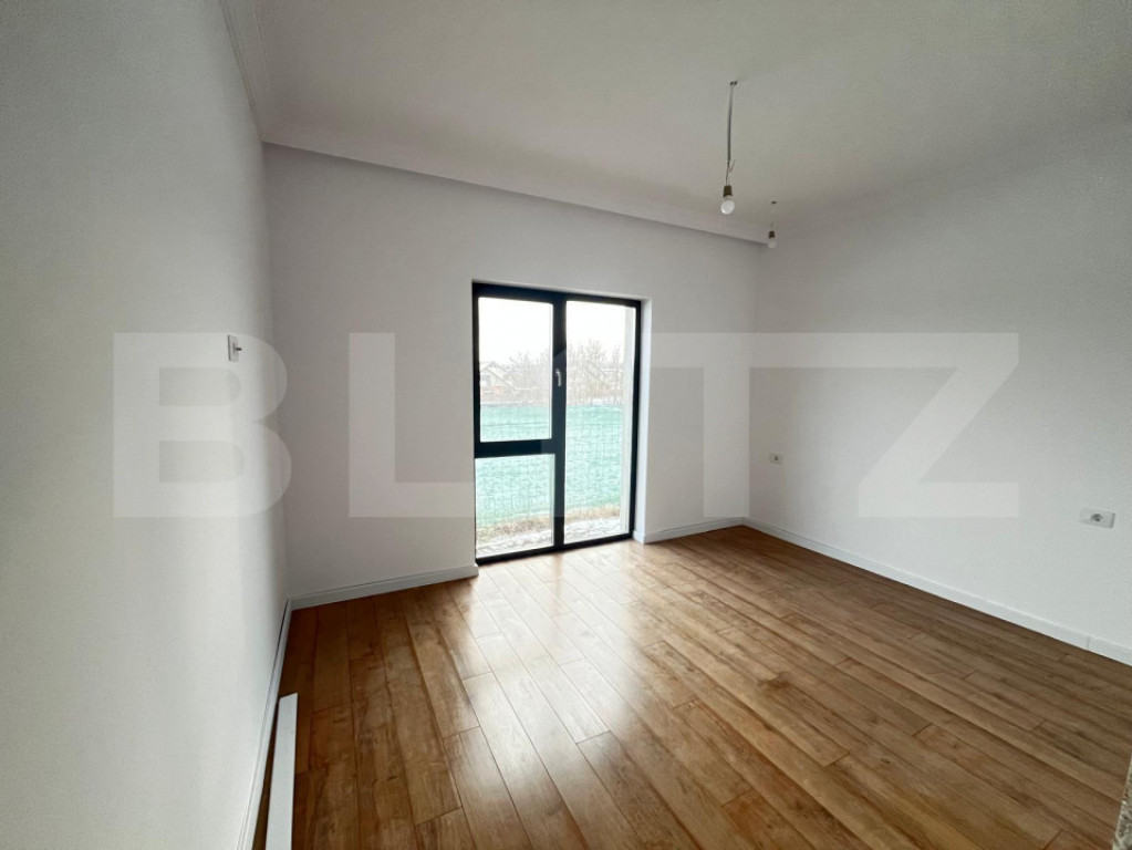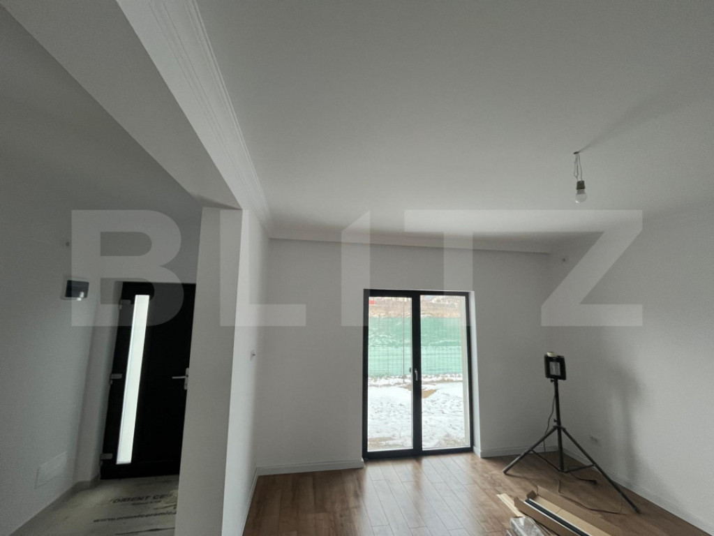 Blitz va propune spre vanzare casă nouă, parter, 3 camere, 107 mp utili, teren 350 mp, finalizare martie–aprilie, preț 157.000 €. Descriere generală • Casă individuală P+0, construcție nouă, izolată cu polistiren de 10 cm, în zona de case noi (aprox. 350 mp teren, casă 107 mp utili, amprenta 80 mp). • Înălțime interioară de aproximativ 2,30 m, pod pe toată suprafața casei, accesibil pentru depozitare. Compartimentare și finisaje • Living spațios cu deschidere spre curte, ferestre mari tripan și parchet tip lemn cald. • 3 dormitoare luminoase, cu ieșire pe terasă/curte prin uși culisante din termopan tripan Gealan. • 2 băi complet finisate: una cu duș tip walk‑in, cealaltă cu cadă freestanding; obiecte sanitare îngropate, bideu, faianță și gresie premium cu aspect de marmură. Instalații și dotări • Încălzire în pardoseală cu 4 termostate de zonă, centrală Immergas, pregătită pentru eficiență energetică ridicată. • Utilități: apă, gaz, curent, fosă septică, instalații sanitare și electrice noi, toate trase și funcționale. • Tâmplărie PVC cu geam tripan, ușă de intrare modernă, pregătire pentru iluminat interior/exterior și pentru montaj bucătărie. Exterior și curte • Tencuială exterioară realizată, casă pregătită pentru decorativă/culoarea finală la alegerea viitorului proprietar. • Curte perimetrală de 350 mp, ideală pentru terasă, zonă verde și loc de joacă; împrejmuită cu gard și plasă de protecție. Preț și disponibilitate • Preț: 157.000 €, se acceptă credit bancar sau plata cash. • Predare estimată: martie–aprilie, cu toate finisajele și actele la zi (intabulată, gata de mutat). Va asteptam la vizionare! Cod ofertă / ID BLITZ: P161488 Id intern: P161488
