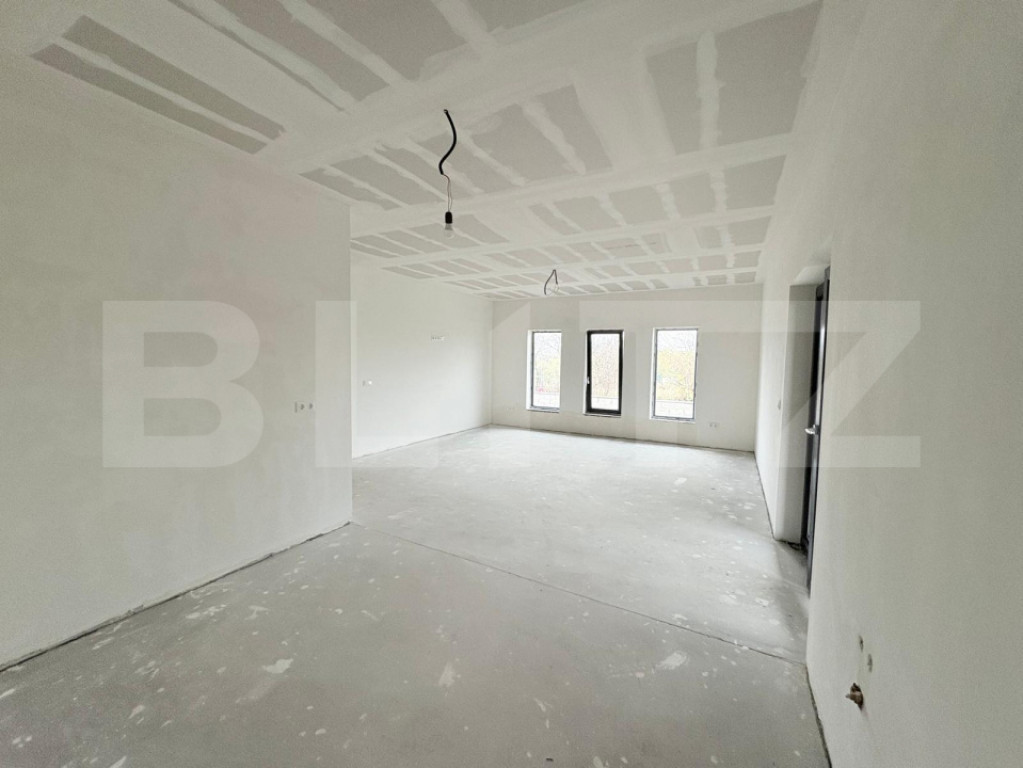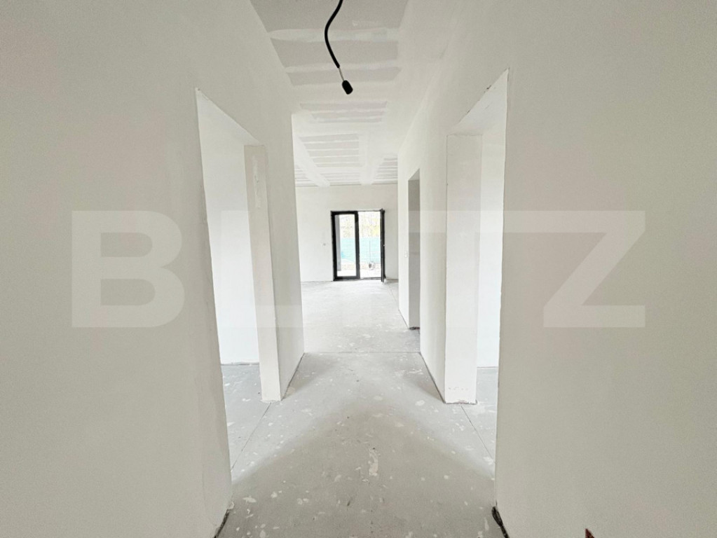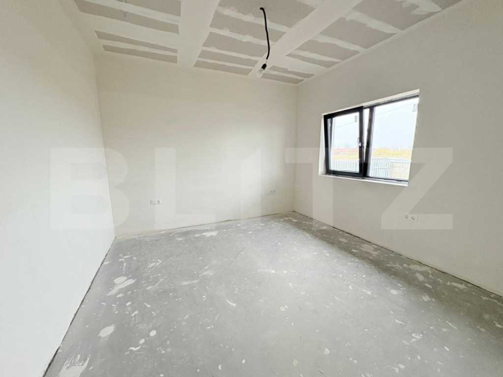Casă semifinisată, situată într-o zonă liniștită, utilități: curent, apă, canalizare. Teren: 4,5 ari Compartimentare: 2 dormitoare spațioase living generos cu bucătărie open-space debara, baie, terasă, cameră tehnică Dotări și finisaje: încălzire în pardoseală, geamuri termopan, acoperiș cu țiglă, pod, gard în jurul proprietății Casă modernă, ideală pentru o familie care își dorește confort și spațiu. Cod ofertă / ID BLITZ: P157846 Id intern: P157846