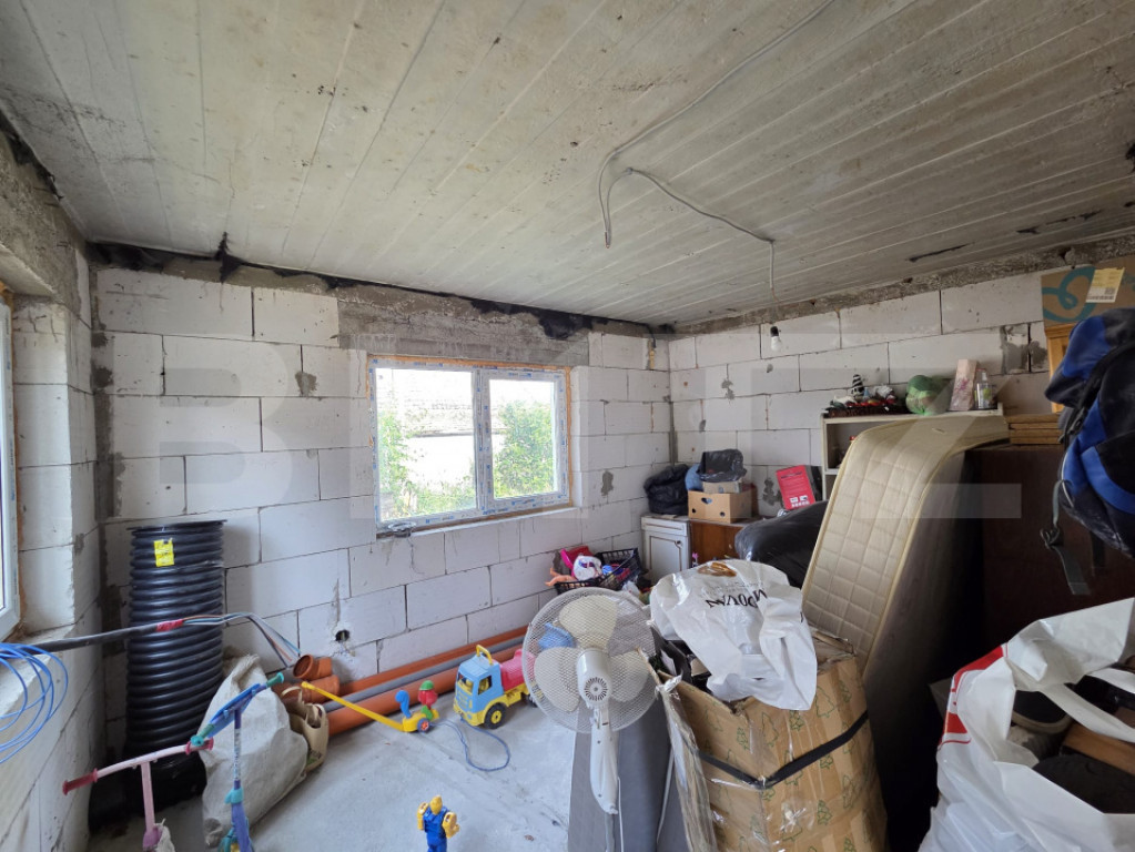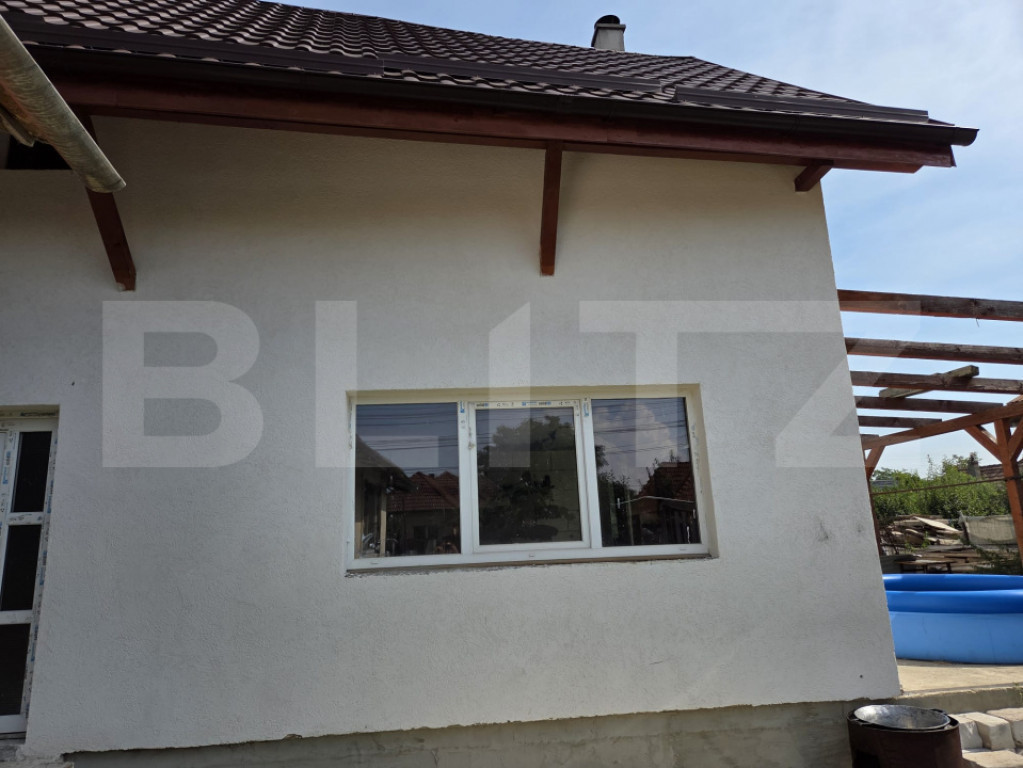 Vă propunem spre vânzare o **casă modernă**, situată în Sânnicoară, la doar câțiva pași de Cluj-Napoca, într-o zonă liniștită, ideală pentru locuire. ???? **Detalii tehnice:** * suprafață utilă: **120 mp** * compartimentare practică: * **living cu bucătărie open-space** * **3 camere** * **2 băi** * **terasă** spațioasă pentru relaxare * teren cu **front stradal de 13 m** * loc de parcare inclus ???? **Stadiu și dotări:** * se vinde la stadiul de **semifinisat** (conform fotografiilor) * liber de sarcini, cu acte în regulă * posibilitatea de a personaliza finisajele după propriul gust ???? **Localizare:** * Sânnicoară, zonă rezidențială liniștită * aproape de Cluj-Napoca și de toate facilitățile necesare: magazine, școli, transport în comun --- ???? O locuință potrivită pentru cei care caută liniștea unei zone rezidențiale, dar în același timp acces rapid către oraș. Cod ofertă / ID BLITZ: P152418 Id intern: P152418