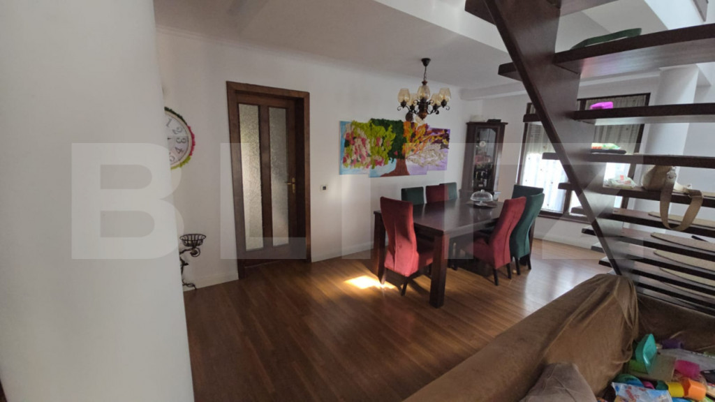 Blitz va propune o casă de vânzare – proprietate spațioasă, modernă și bine compartimentată. Se vinde o casă generoasă, ideală pentru o familie care își dorește confort, spațiu și dotări moderne. Proprietatea dispune de un teren de 6 ari și o suprafață construită de 350 mp, gândită pentru funcționalitate și confort. Detalii locuință: Suprafață casă: 350 mp Teren: 6 ari 4 dormitoare, dintre care 2 dormitoare cu baie proprie 1 baie suplimentară la parter Șemineu – perfect pentru serile de relaxare Încălzire în pardoseală Centrală nouă Garaj încăpător 3 balcoane cu vedere deschisă 1 terasă ideală pentru relaxare sau zone de dining în aer liber Cod ofertă / ID BLITZ: P158715 Id intern: P158715