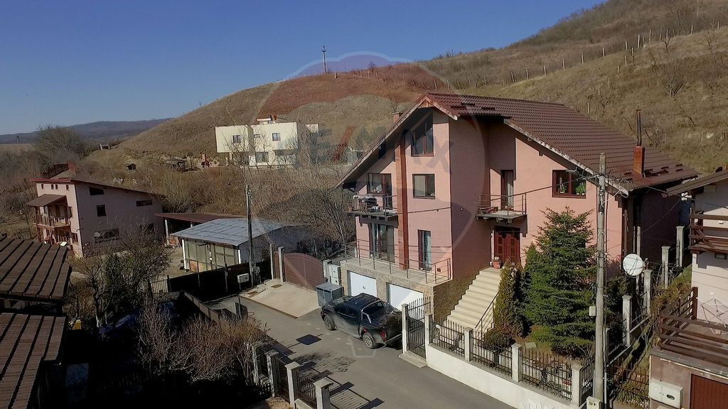 Vă propunem spre vânzare o proprietate cu 6 camere, perfecta pentru 2 familii, situată pe strada Caisului, nr. 30, în localitatea Baciu, jud. Cluj. Casa are regim de înălțime D + P + M, existând posibilitatea ca aceasta să fie locuită de 2 familii, având următoarea compartimentare: 1. Demisol: - 2 garaje, cu acces individual (suprafață totală de 30.09 mp). 2. Parter: - 2 bucătării (ambele cu suprafața de 12.25 mp); - 2 băi (cu suprafață de 8.75, respectiv 5 mp); - 1 living cu suprafață de 25 mp; - 1 cameră de 11.90 mp; - 1 balcon de 8.22 mp. 3. Mansardă: - 4 dormitoare (cu suprafața de 12.25, 17.00, 20.00, respectiv 23.20 mp) - 1 baie cu suprafața de 8.75 mp; - 1 balcon cu suprafața de 4.80 mp. Suprafața totală a terenului este de 800 mp, cu front 15.37 ml. În partea din spate a casei este amenajată o zonă de barbeque și un spațu de depozitare pentru uneletele de grădină. Suprafața de teren rămasă disponibilă a fost deja amenajată cu pomi fructiferi roditori. Un aspect demn de luat în seamă este faptul că proprietatea se află într-o zonă liniștită, de case, iar strada este fără trafic intens. Pentru mai multe informații sau pentru a programa o vizionare, contactați-ne cu încredere!
