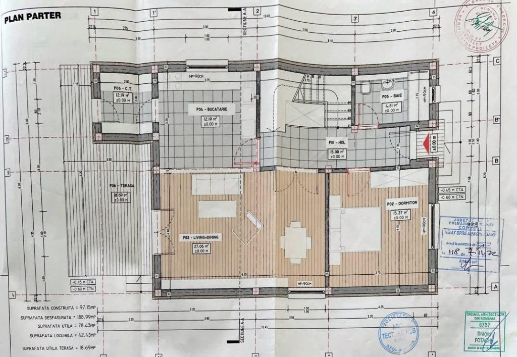 • Parter: living generos, bucătărie, cameră tehnică, spațiu de depozitare sub scări (compartimentat), baie