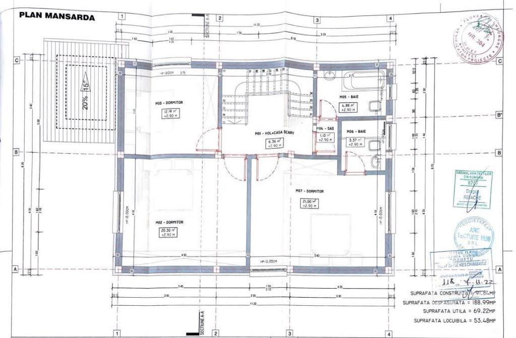 Acoperișul este foarte bine izolat, tip o apă, acoperit cu tablă Lindab și folie anticondens de înaltă densitate.